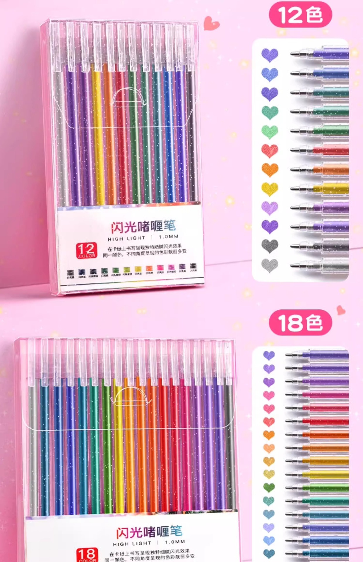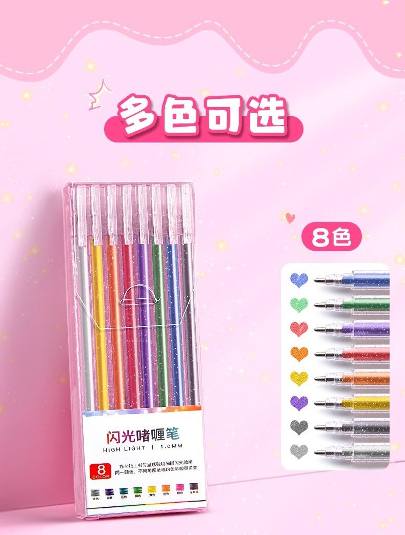 어린이 빛나는 실버 빛 유사 색상 변경 마크 그림 진주 빛 컬러 반짝이 젤 펜 형광 스트로크 키 펜