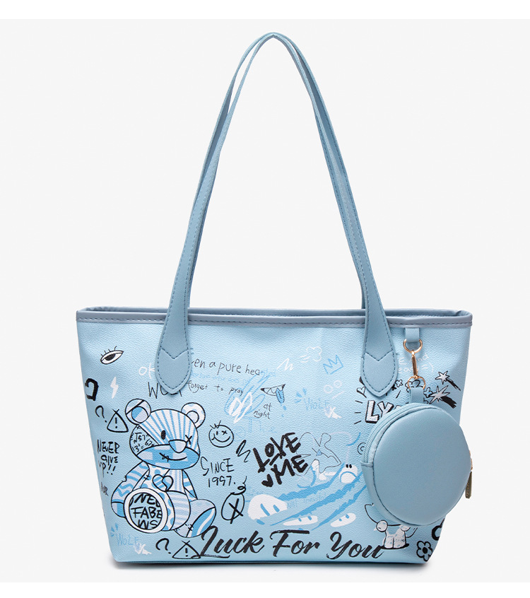 곰 낙서 버킷 가방 여성의 2024 여름 새로운 싱글 어깨 크로스 바디 가방 휴대용 틈새 디자인 올 매치 패션스토어 가기