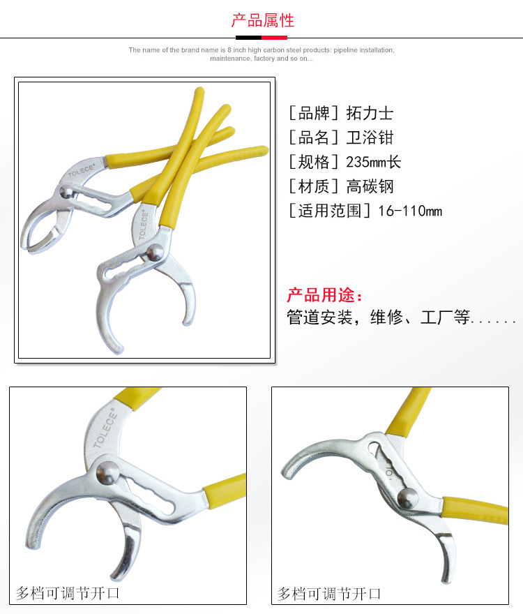 10 인치 욕실 펜치 다기능 야채 분지 파이프 펜치 하수도 대형 오픈 욕실 렌치
