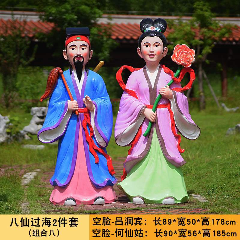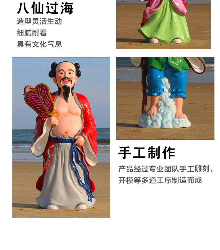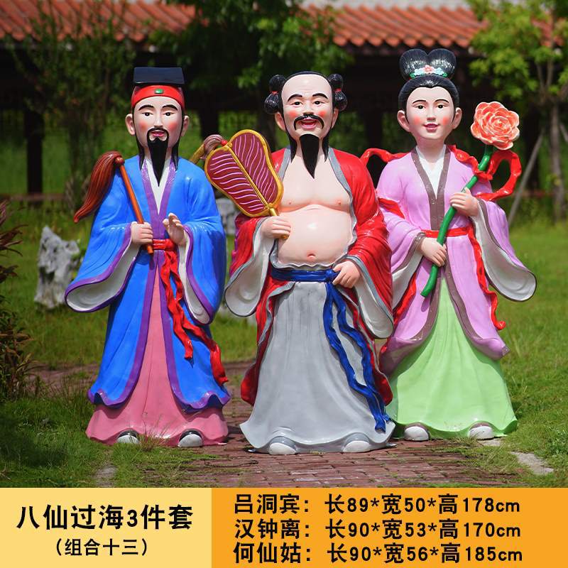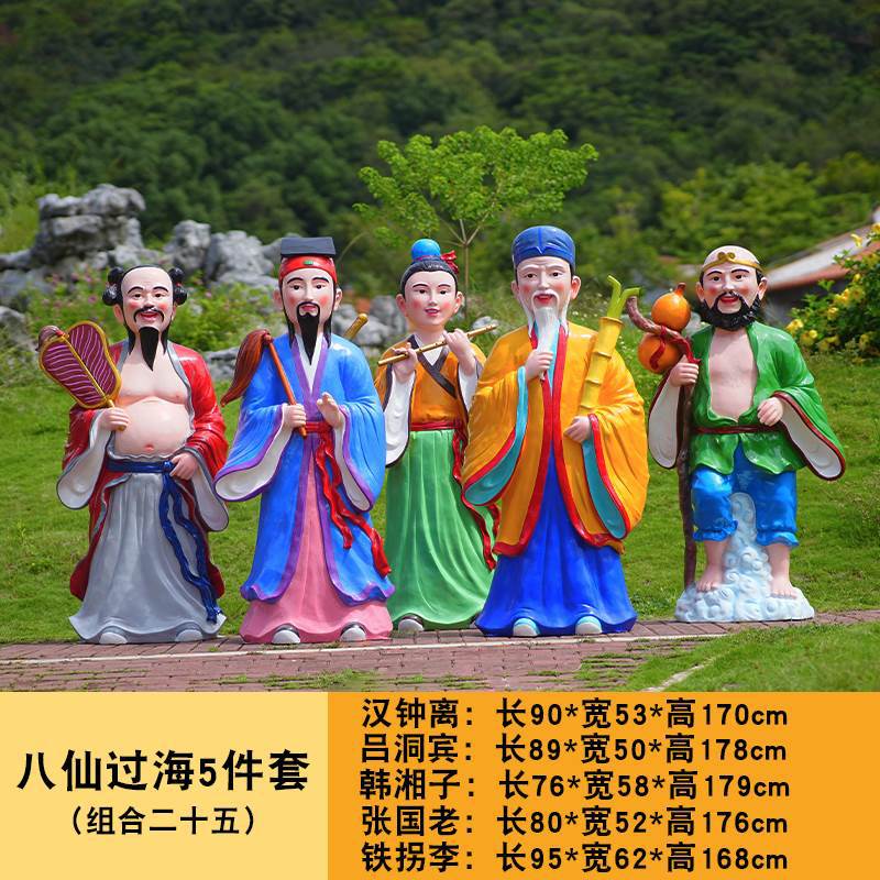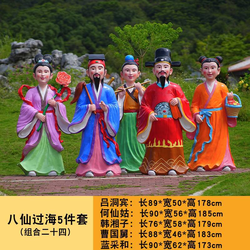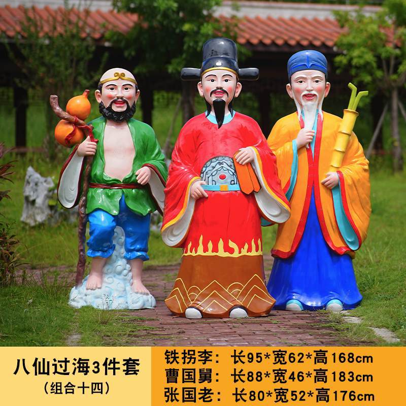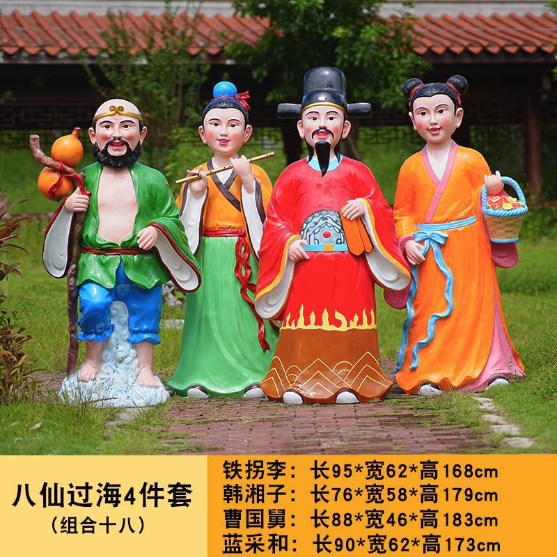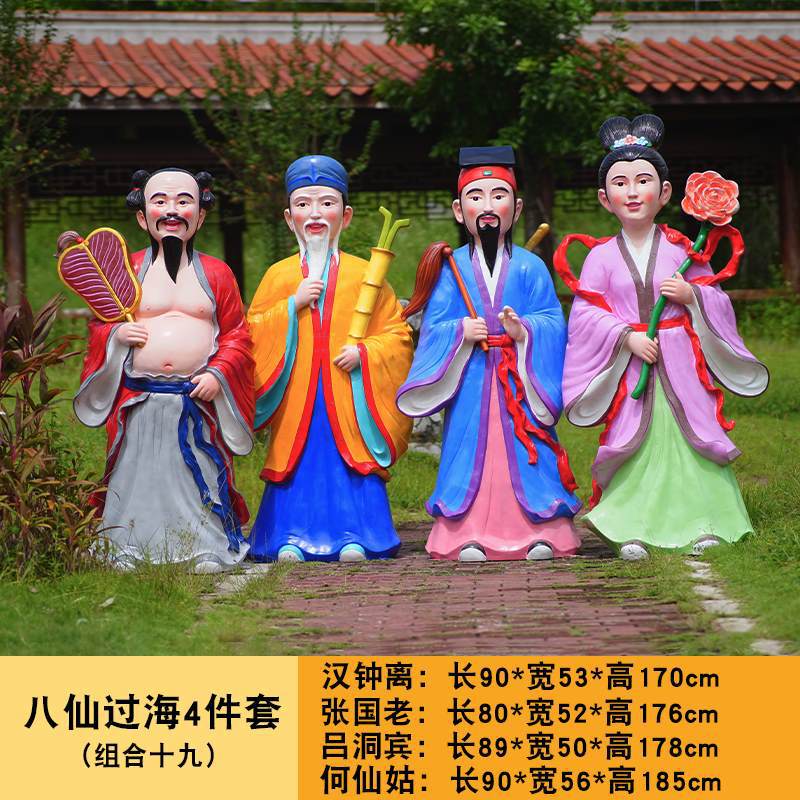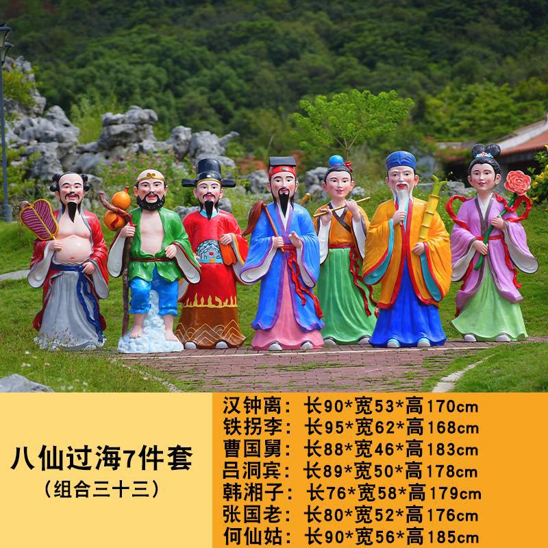 바다 조각 시뮬레이션 피규어를 건너는 야외 8 명의 불멸 자 풍경 지역 공원 사원 유리 섬유 강화 플라스틱 동상 장식 바닥 대형 장식품스토어 가기