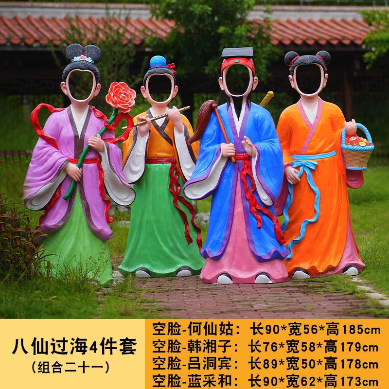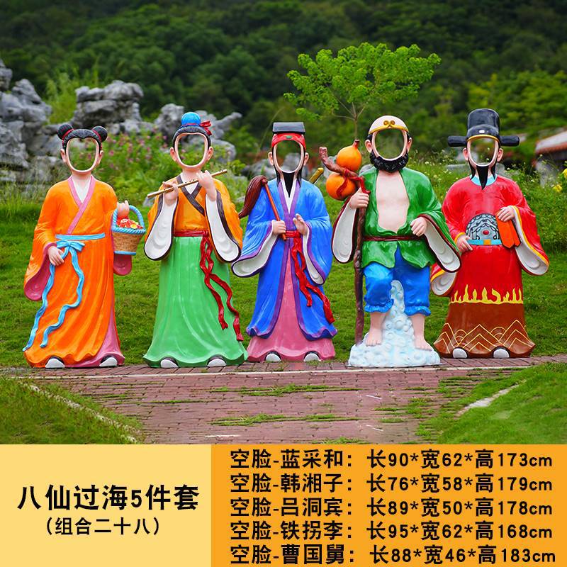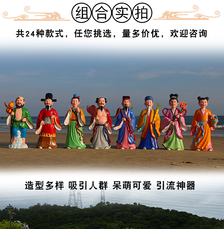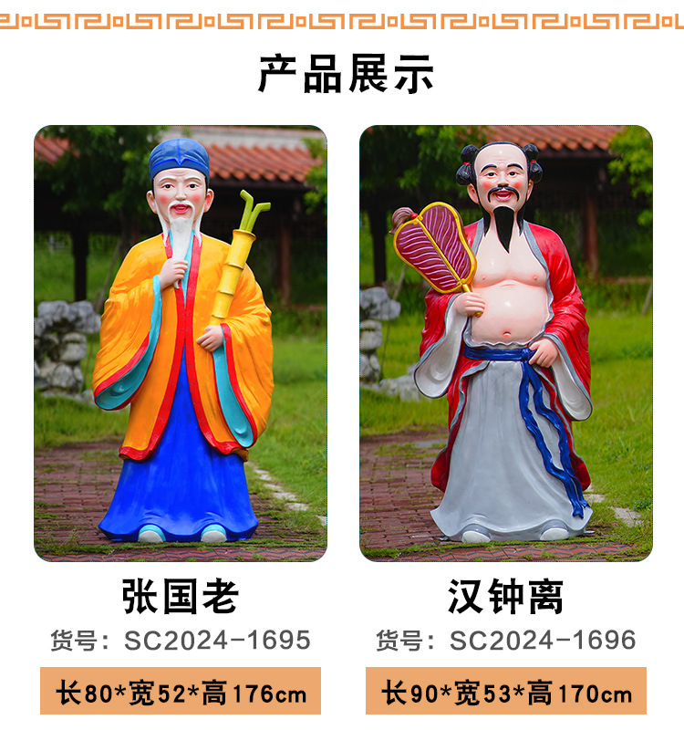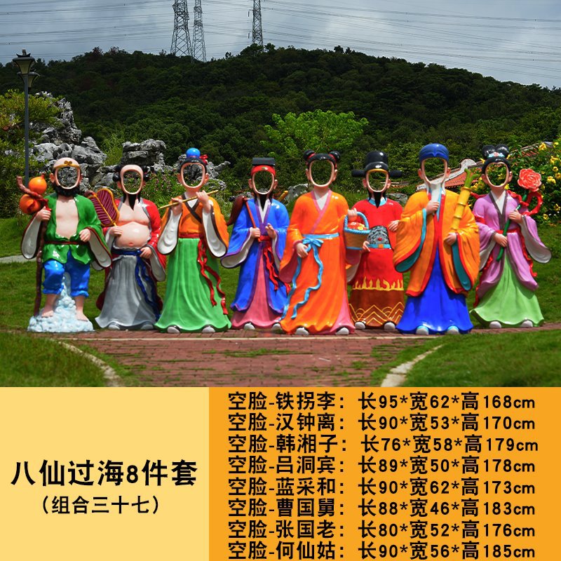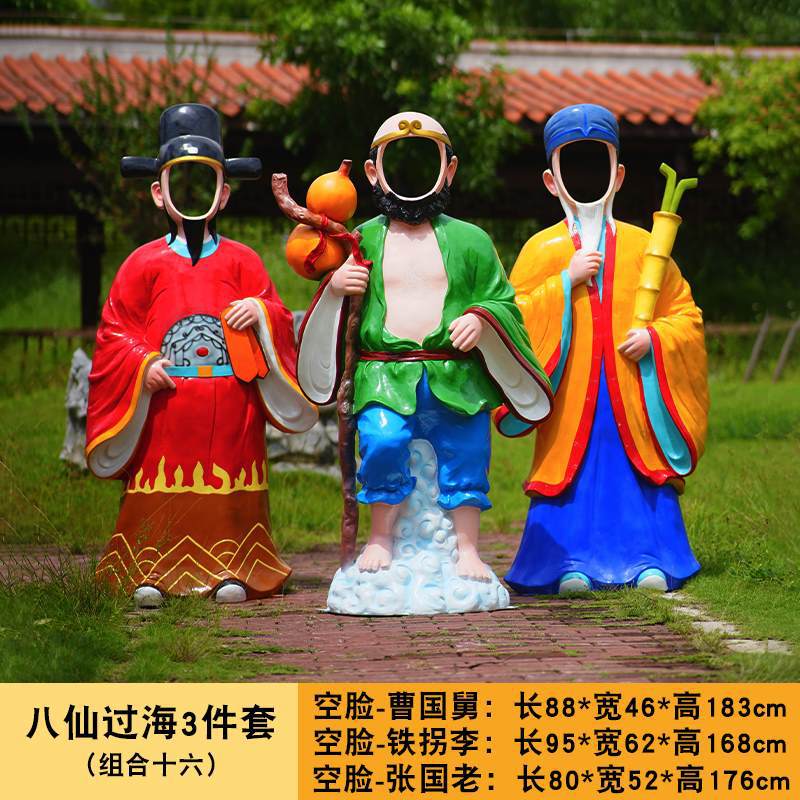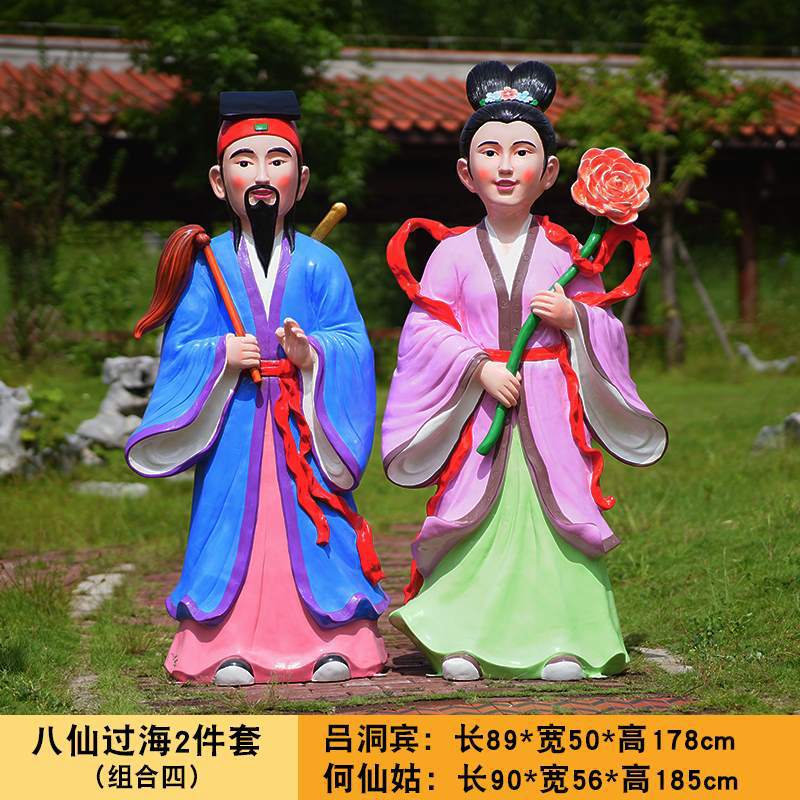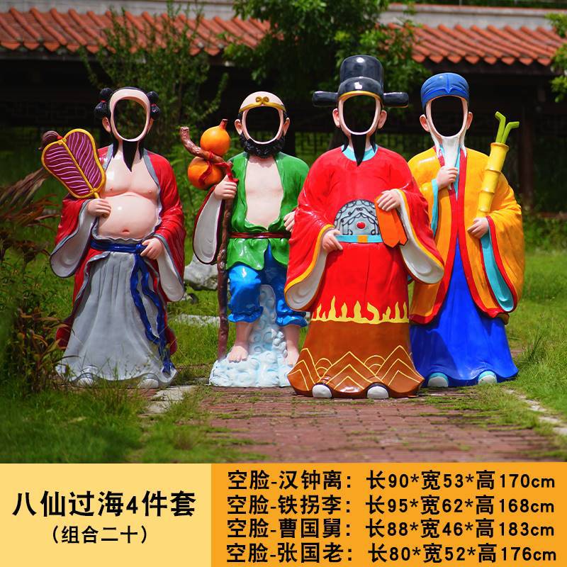 바다 조각 시뮬레이션 피규어를 건너는 야외 8 명의 불멸 자 풍경 지역 공원 사원 유리 섬유 강화 플라스틱 동상 장식 바닥 대형 장식품스토어 가기