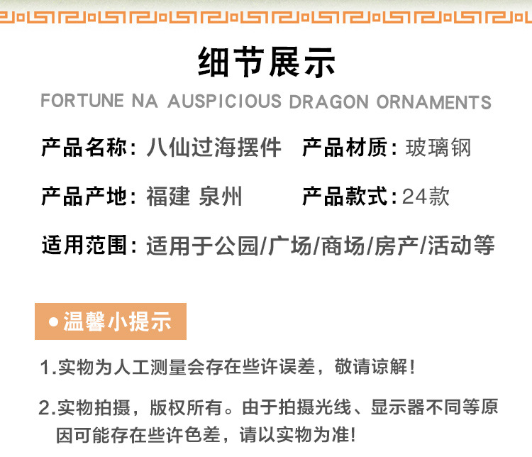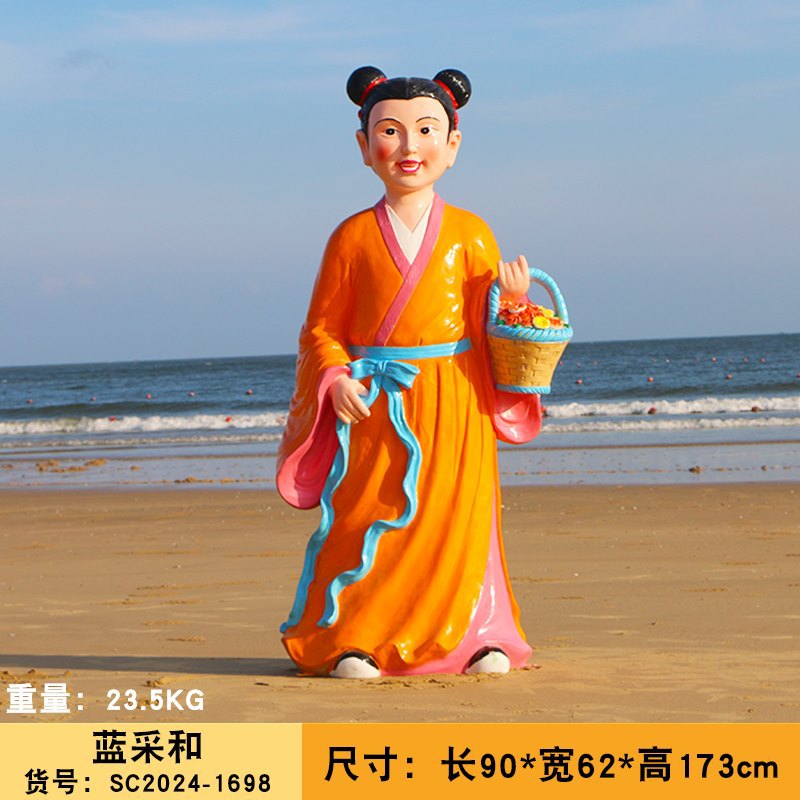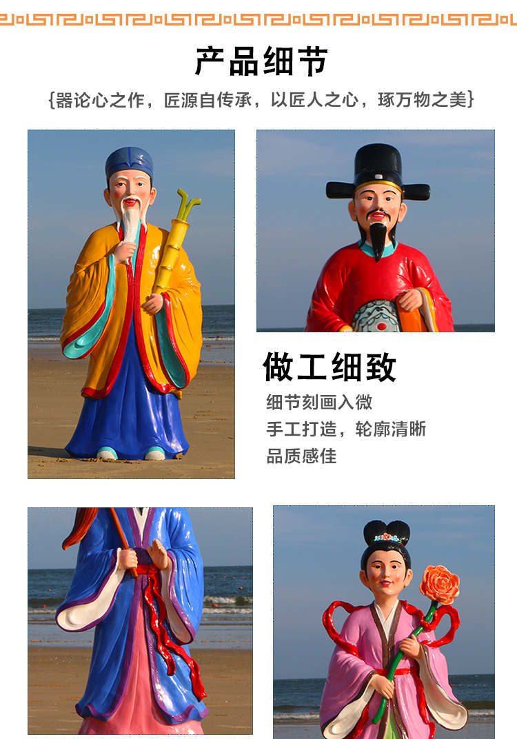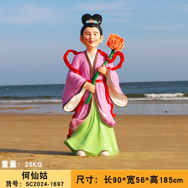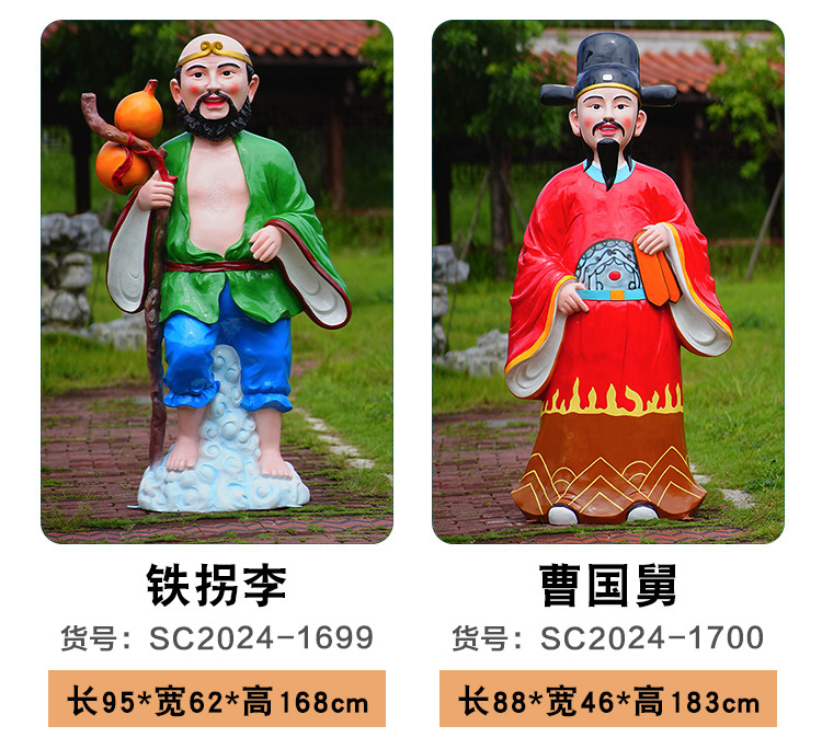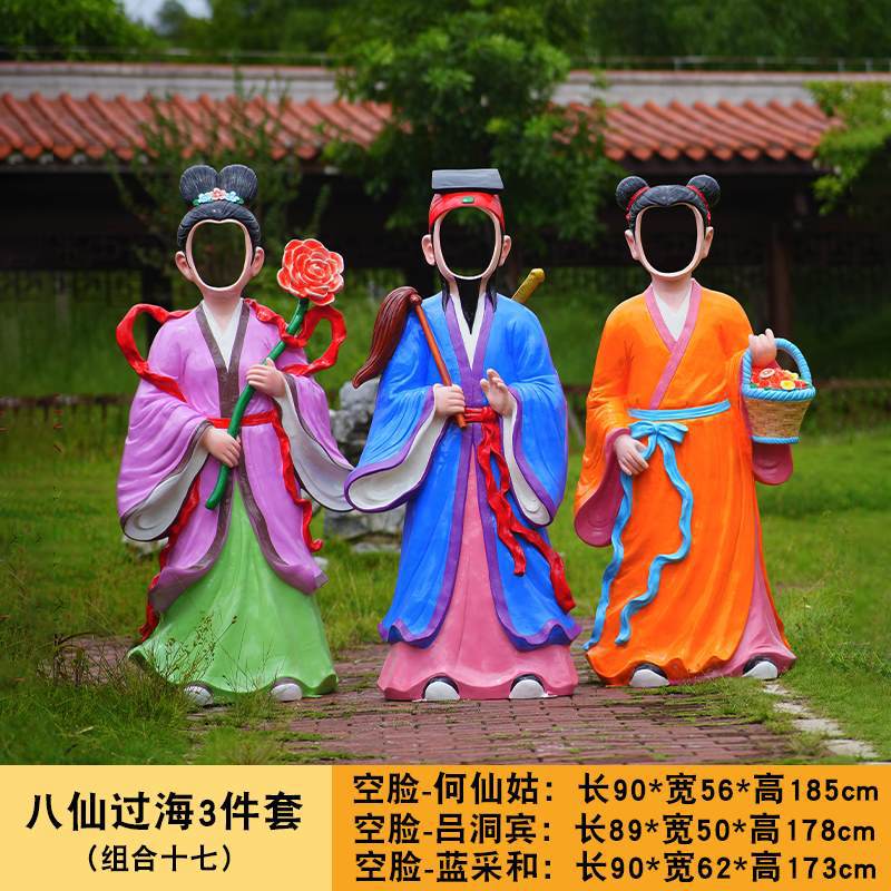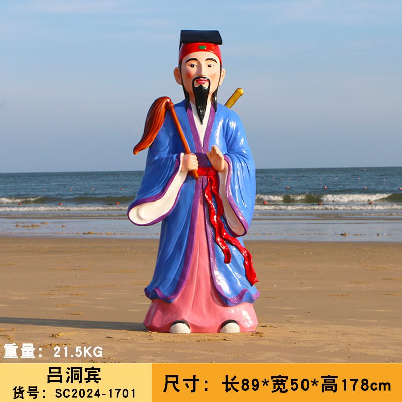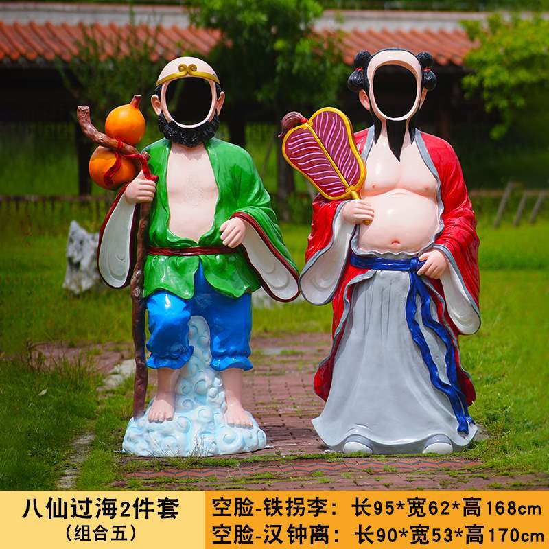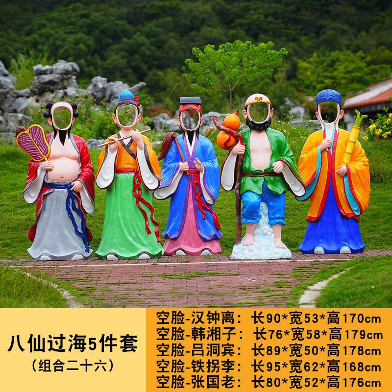 바다 조각 시뮬레이션 피규어를 건너는 야외 8 명의 불멸 자 풍경 지역 공원 사원 유리 섬유 강화 플라스틱 동상 장식 바닥 대형 장식품스토어 가기