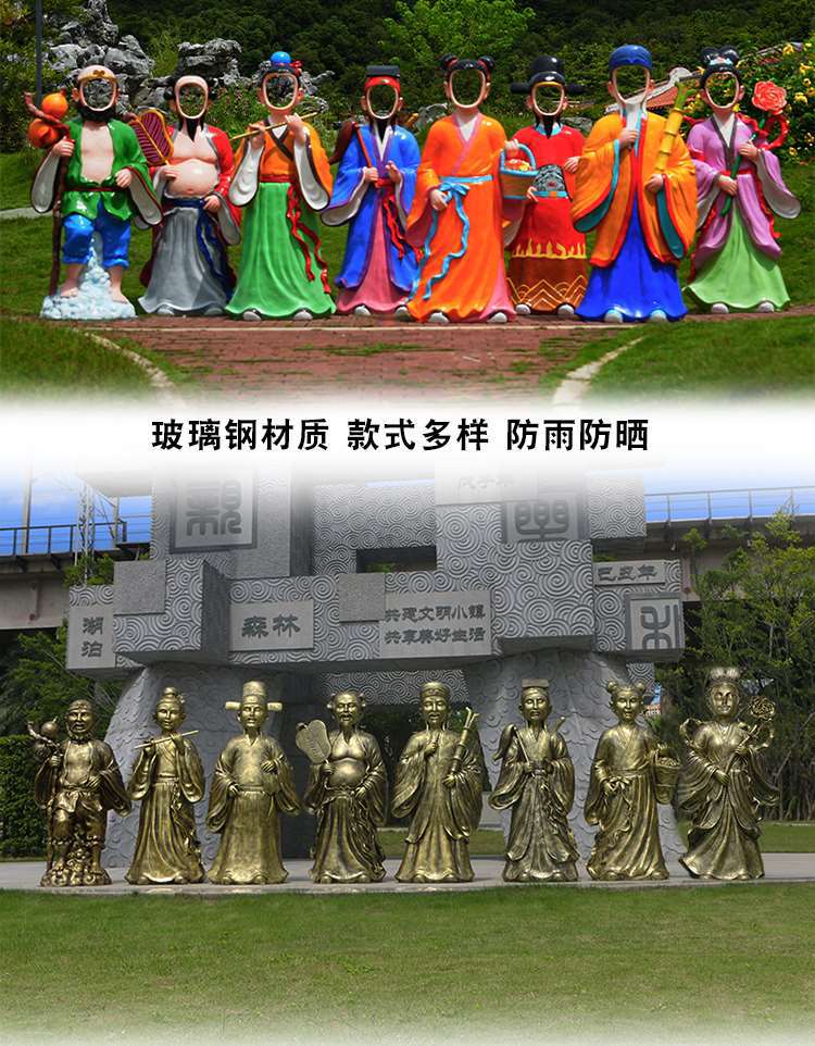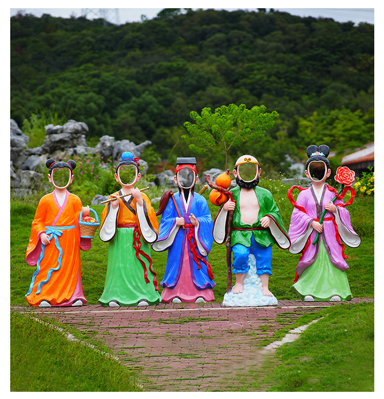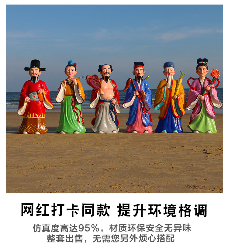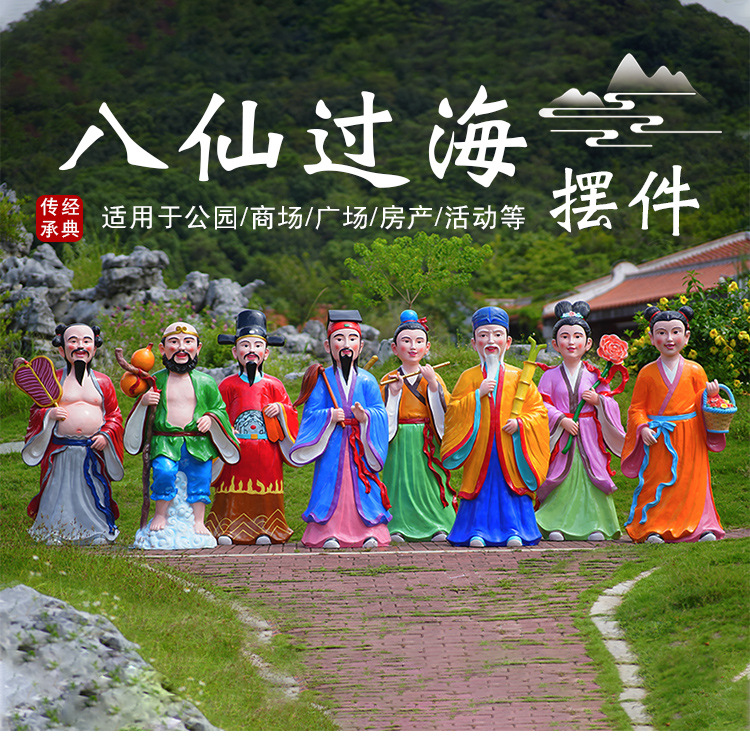 바다 조각 시뮬레이션 피규어를 건너는 야외 8 명의 불멸 자 풍경 지역 공원 사원 유리 섬유 강화 플라스틱 동상 장식 바닥 대형 장식품