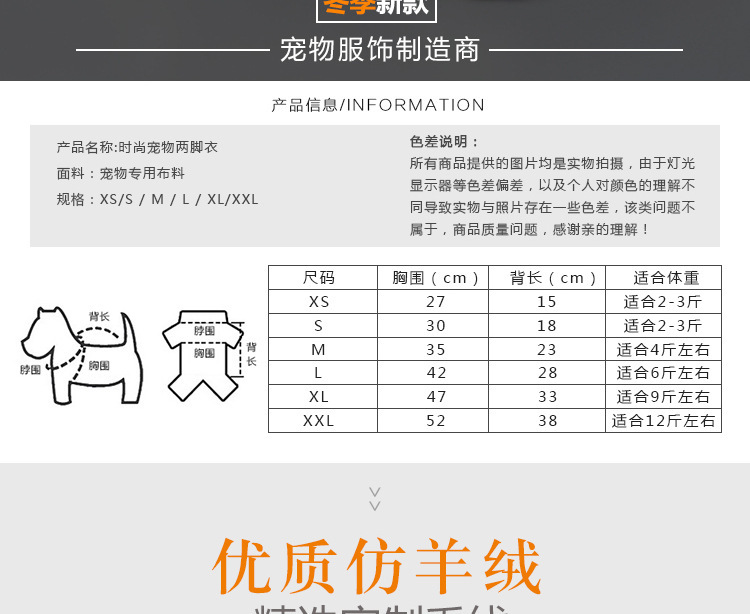 2、宠物宠物在换毛期会很大数量的掉毛,导致家里会出现很多宠物毛发。请给您的宠物宠物穿件衣服,来更好的保持您家里的清洁。