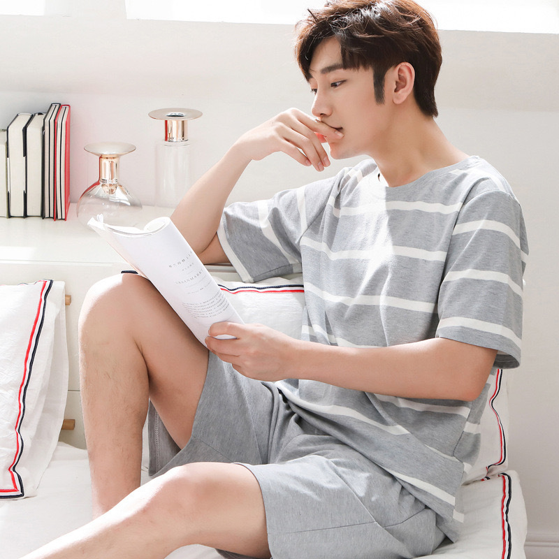 남자 잠옷 여름 모조 면 반팔 2025 새 남자 투피스 세트 플러스 사이즈 여름 주니어 홈 의류 세트스토어 가기
