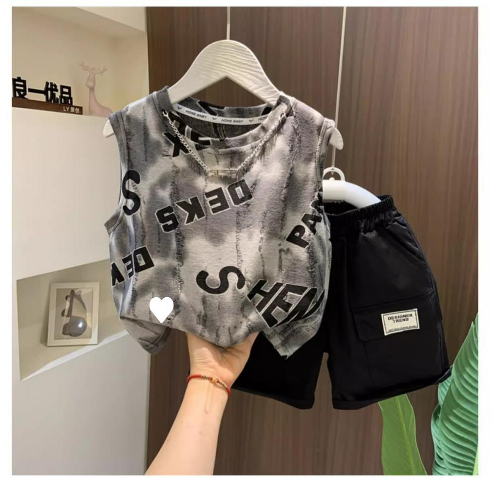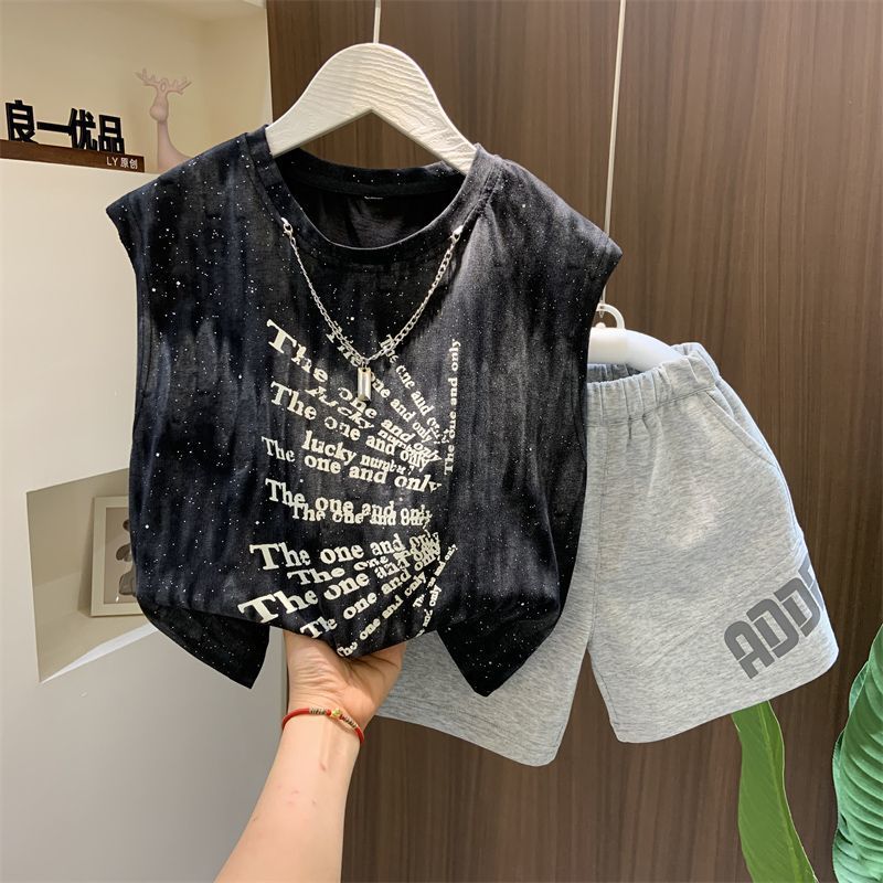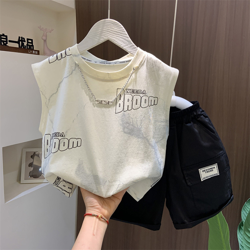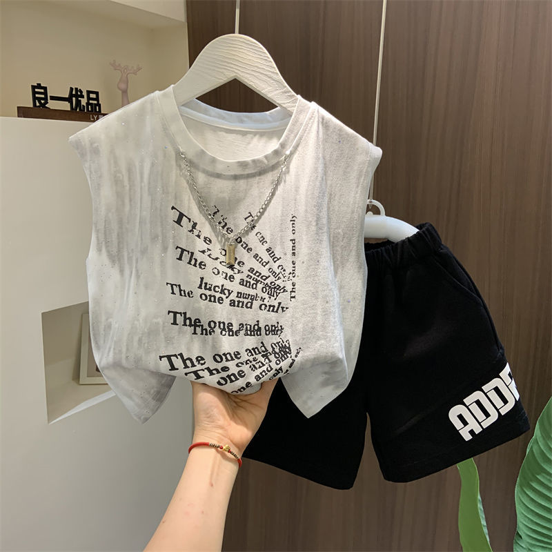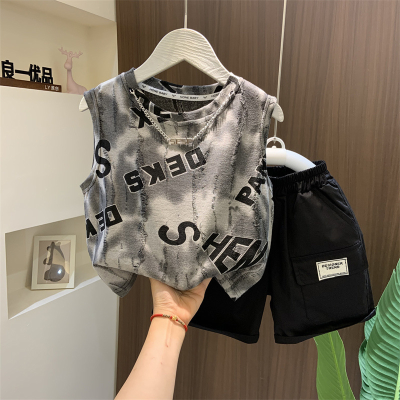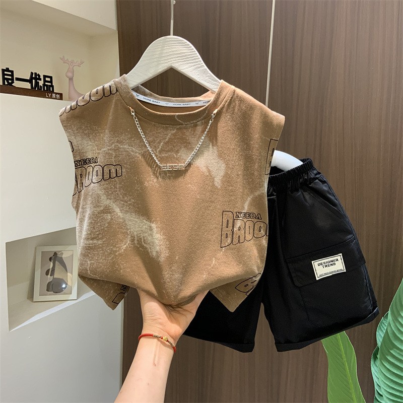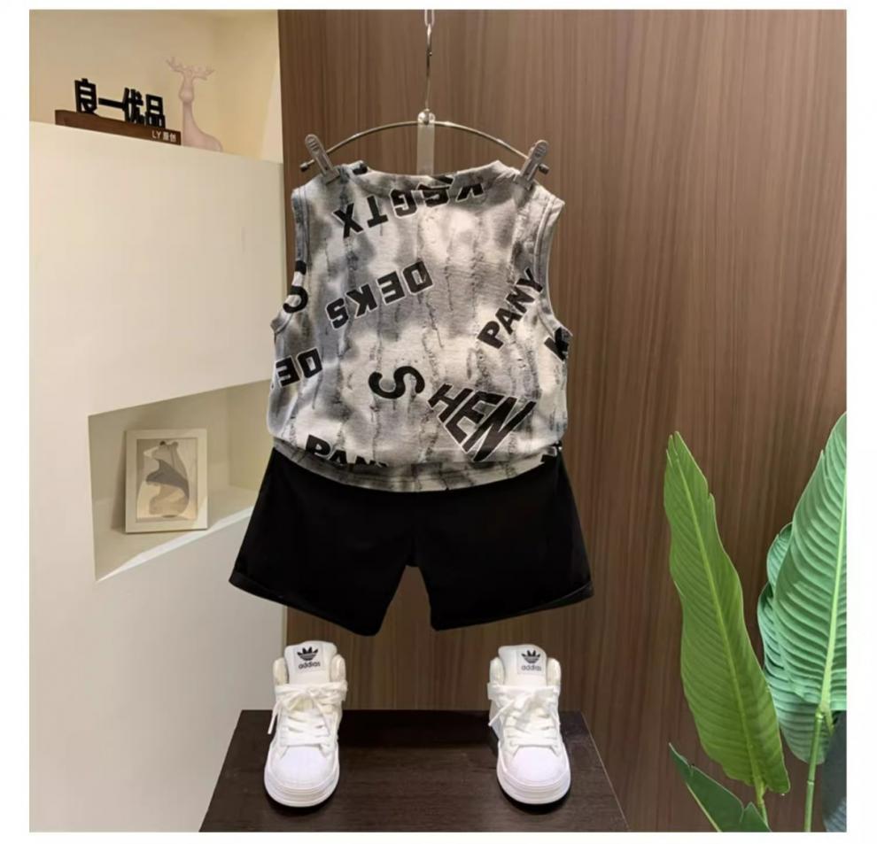 [1128 명 컬렉션] 소년 여름 2025 새로운 외국 스타일 어린이 조끼 세트 아기 여름 소년 튀김