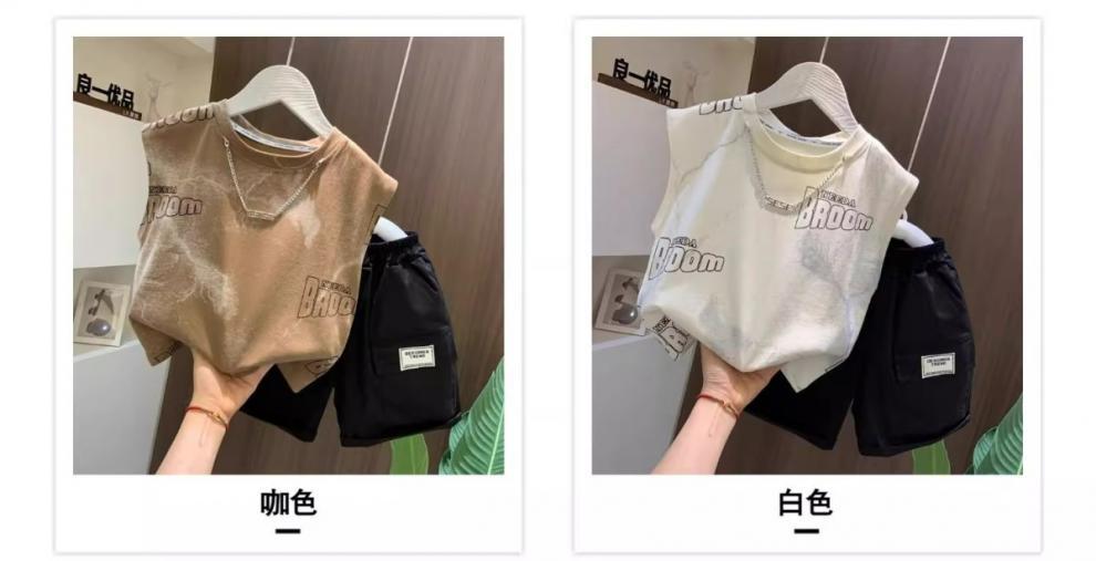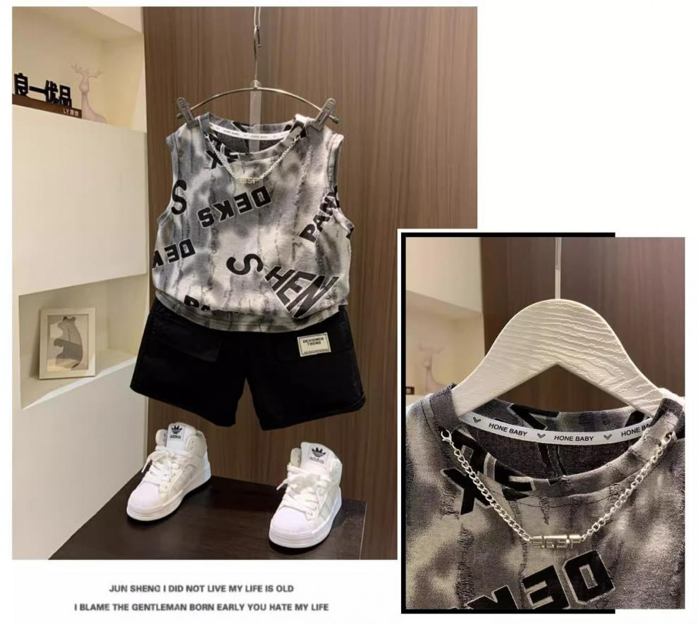 [1128 명 컬렉션] 소년 여름 2025 새로운 외국 스타일 어린이 조끼 세트 아기 여름 소년 튀김스토어 가기