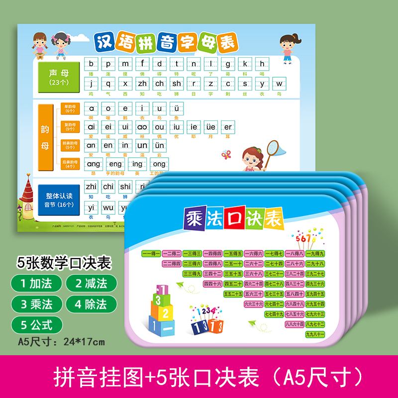 • 총 6장의 그림: 병음 + 덧셈과 뺄셈 + 곱셈과 나눗셈 + 영문자 + 숫자 + 동물