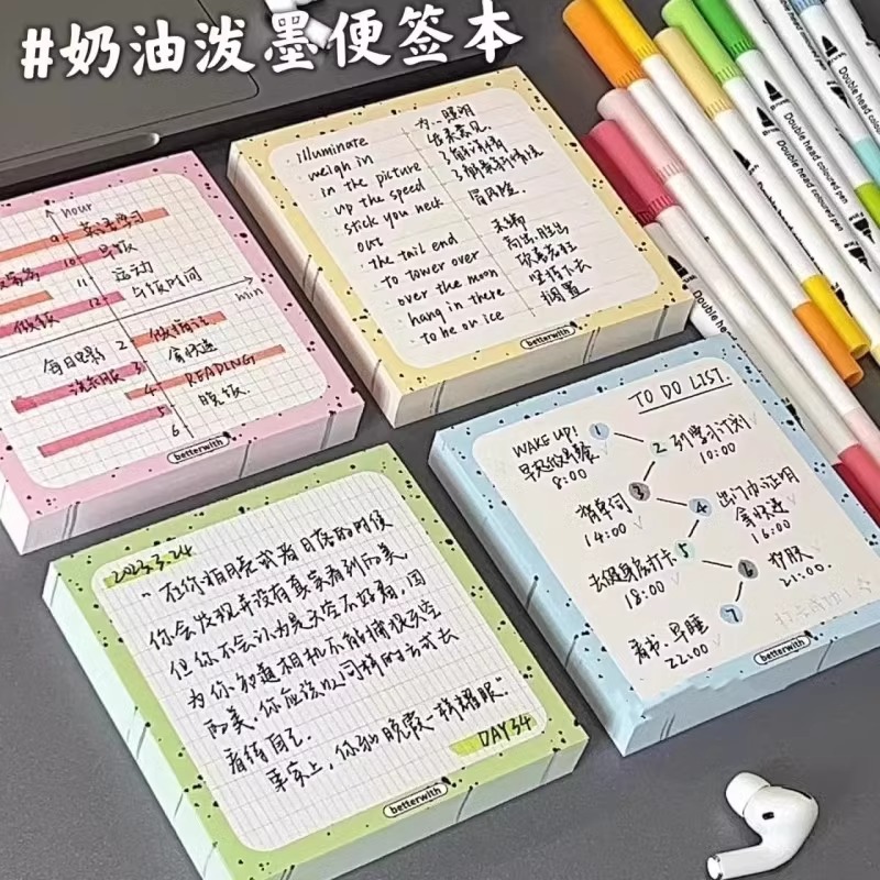 스티커 메모 스타일 고급 크림 스플래시 잉크 스티커 메모 학습 계획 메모 쓰기 가능한 스티커 메모스토어 가기
