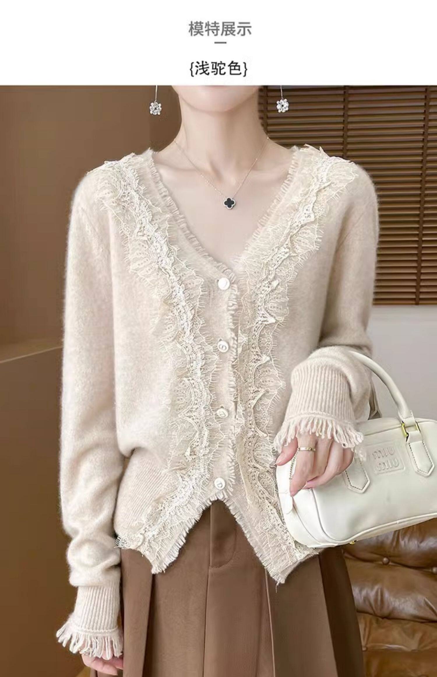 레이스 V 넥 화이트 니트베이스 셔츠 여성용 카디건 봄과 가을 뉴 2025 서양식 긴팔 반팔 스웨터 탑스토어 가기