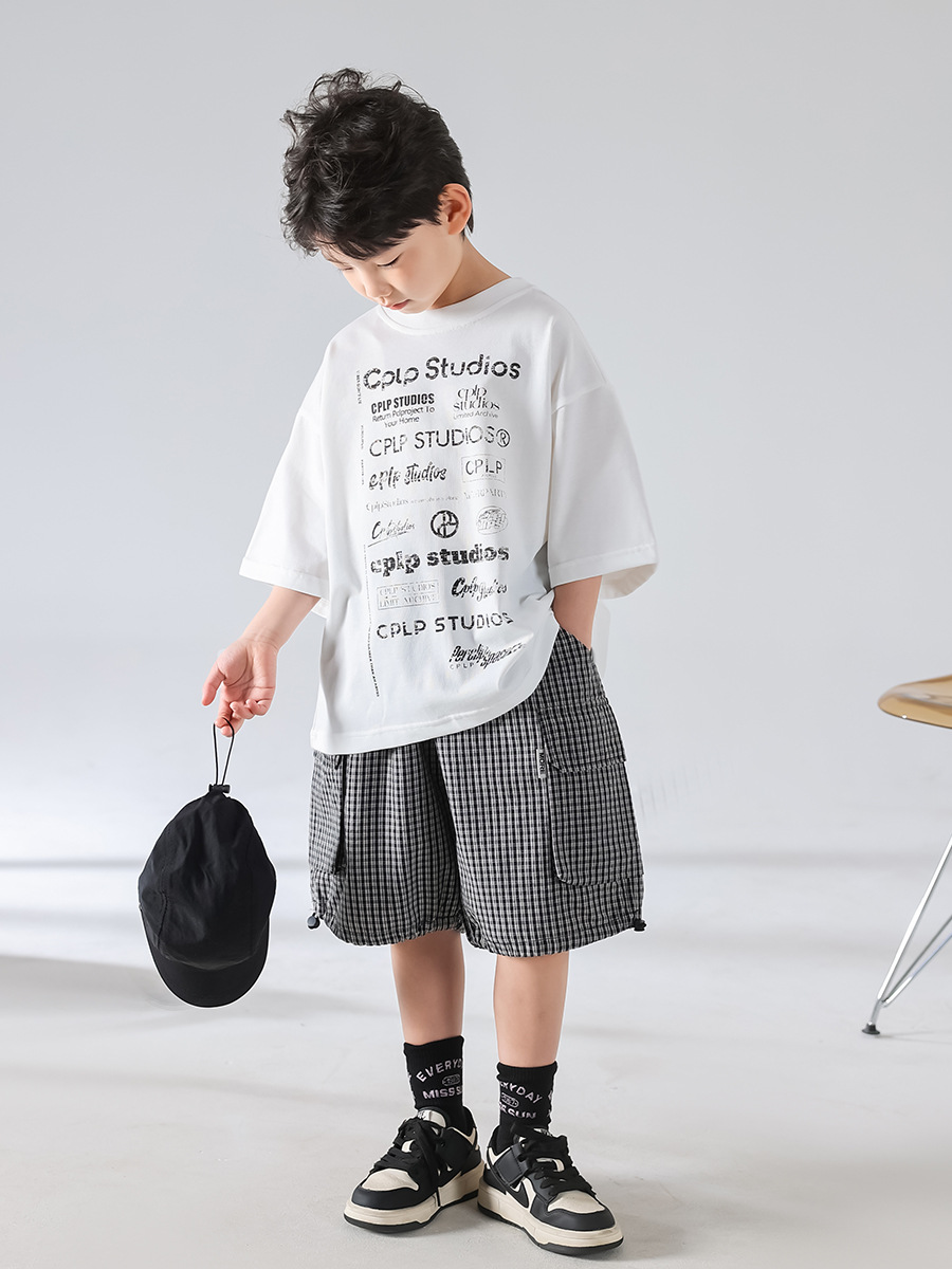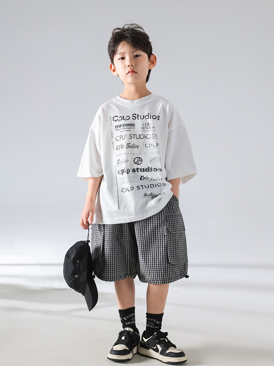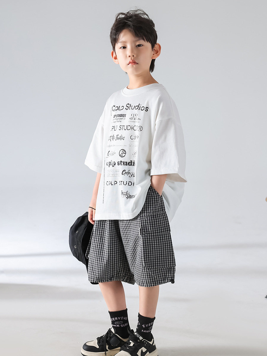 [3 월 4 일 신작 우표] 남학생 여름 한국판 2025 년 새 개성 캐주얼 티셔츠 반바지 세트