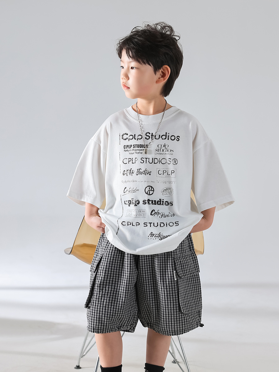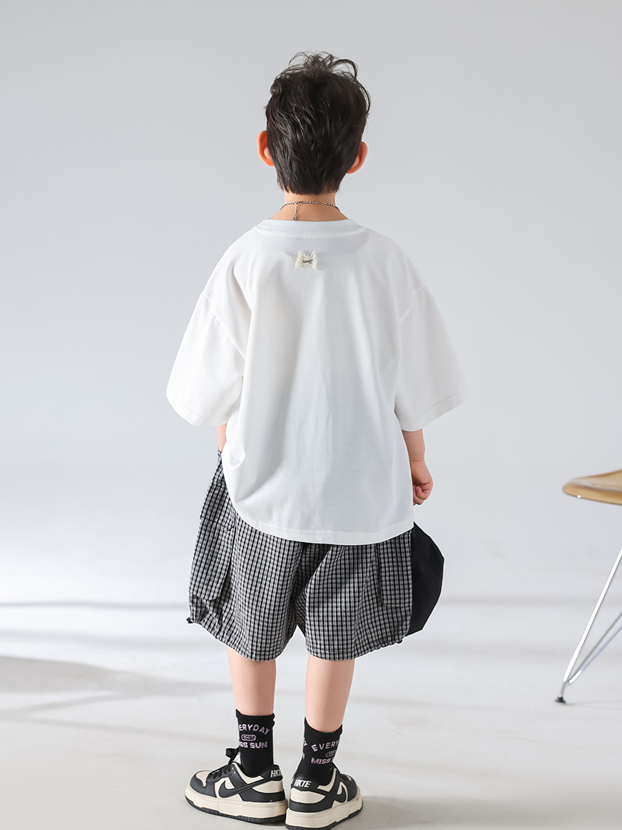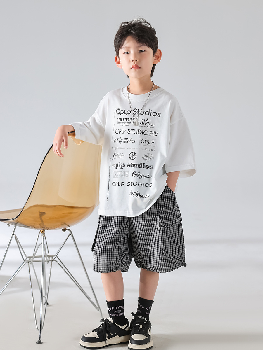 [3 월 4 일 신작 우표] 남학생 여름 한국판 2025 년 새 개성 캐주얼 티셔츠 반바지 세트
