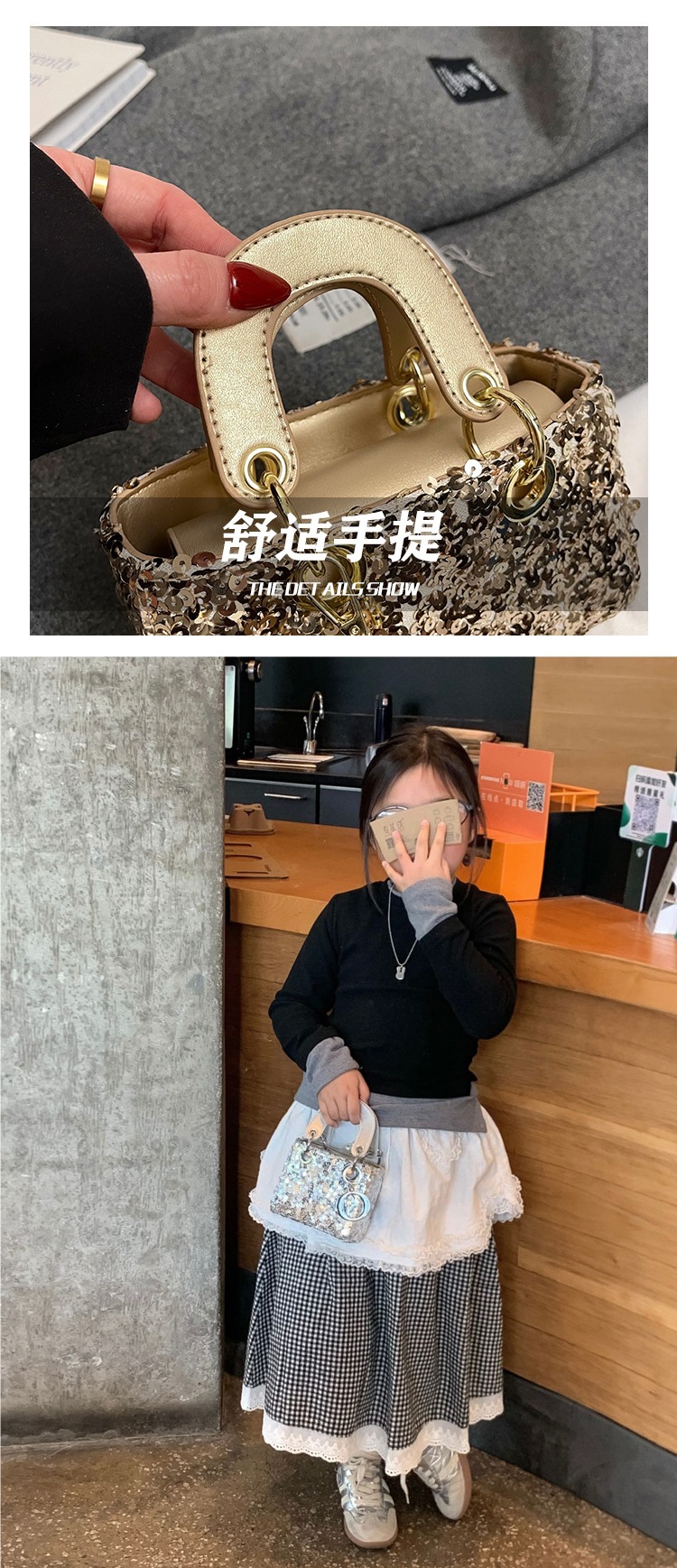 유럽과 미국의 패션 Sequin 어린이와 소녀 핸드 백 미니 Daffy 가방 하이 엔드 세련된 원피스 어울리는 작은 가방 트렌디스토어 가기