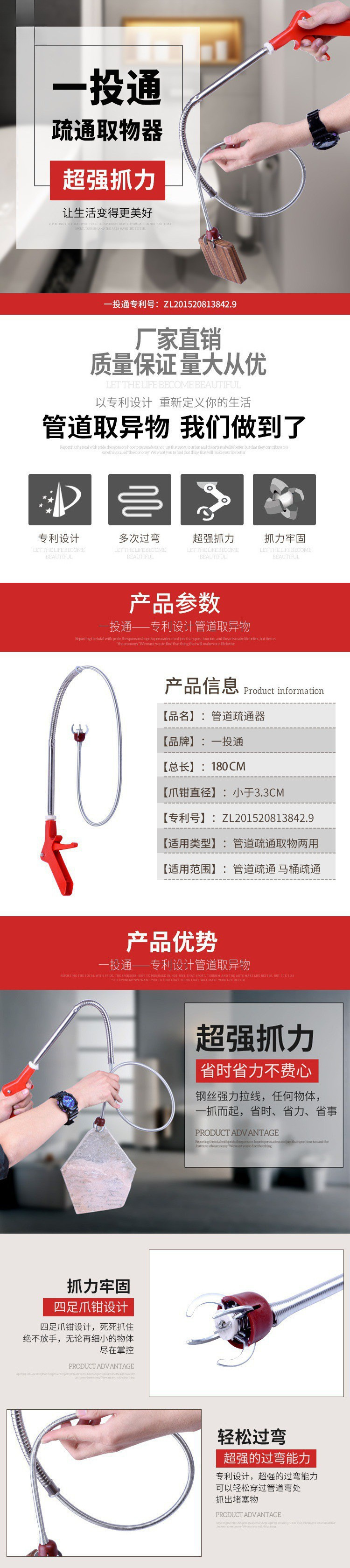 화장실 준설 원샷 하수구 준설 파이프 바닥 배수 준설 하수도 도구 유니버설 뉴스토어 가기