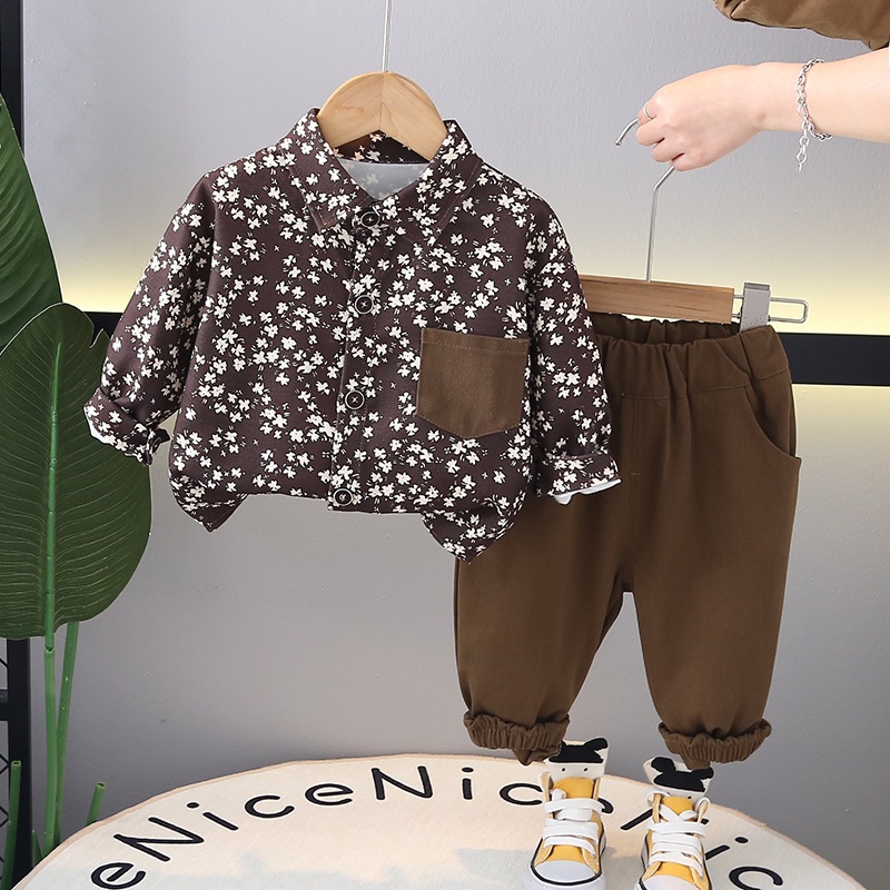 어린이 패션 소년 풀 프린트 꽃 긴팔 셔츠 봄과 가을 새로운 한국 스타일 어린이 얇은 긴팔 셔츠