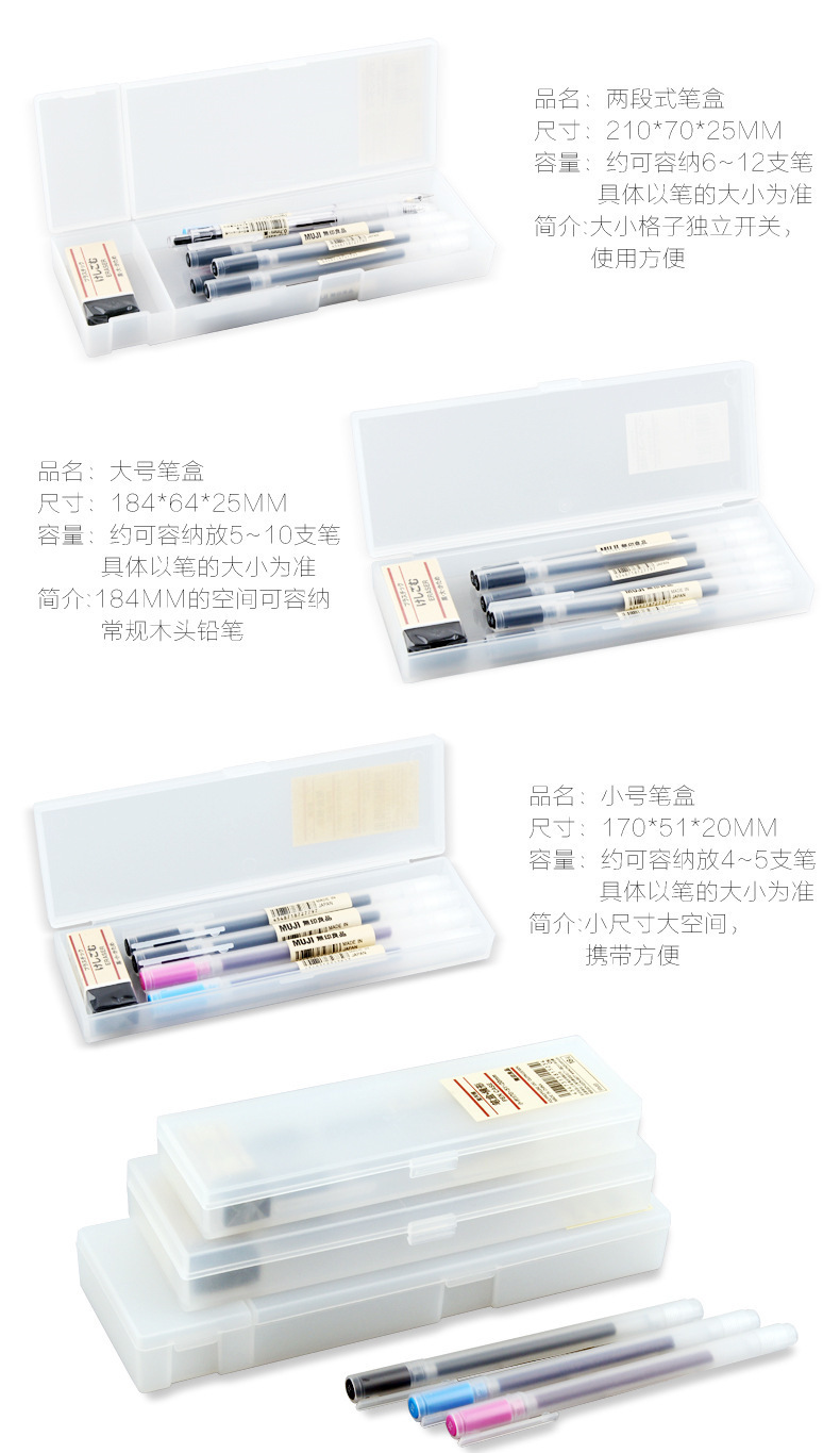 일본 MUJI MUJI 펜 케이스 문구 투명 연필 케이스 학생 간단한 서리 연필 케이스 플라스틱 문구 케이스