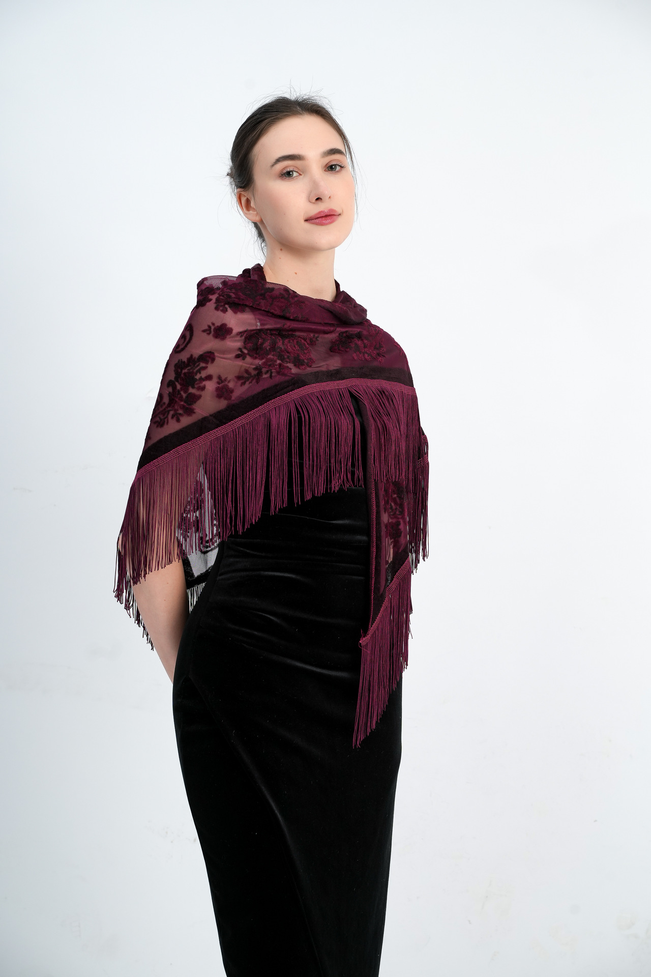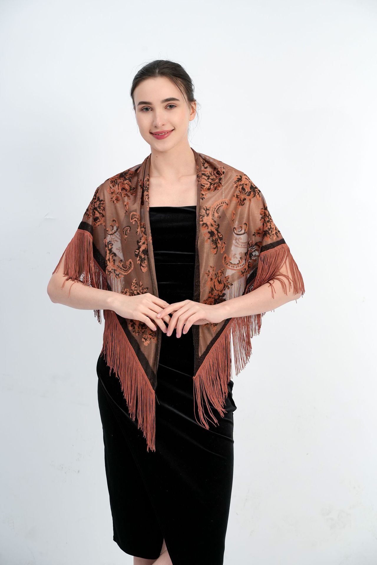 2025 새로운 국경 새로운 중국 스타일 레이스 꽃 2 색 목도리 삼각형 수건 장식 자카드 레이스