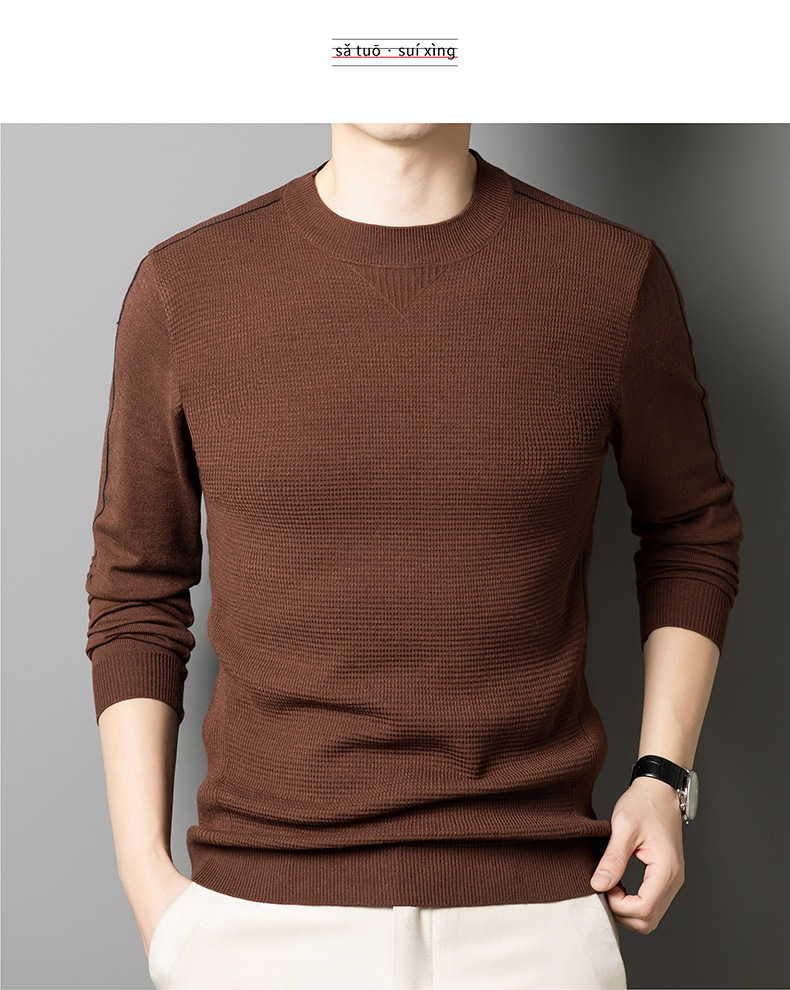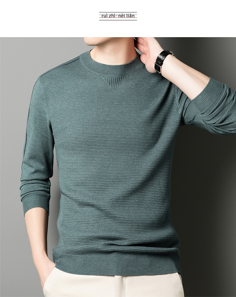 Daifa Jacquard Crewneck 스웨터 남자 2025 년 봄 새로운 유행 간단한 단색 모든 경기 긴 소매베이스 셔츠