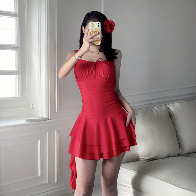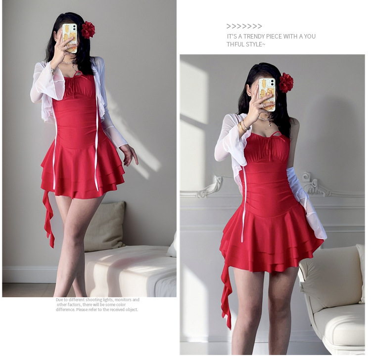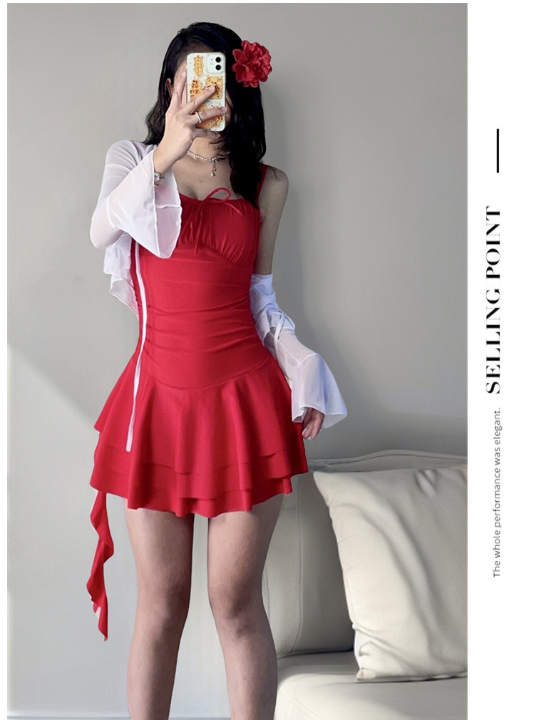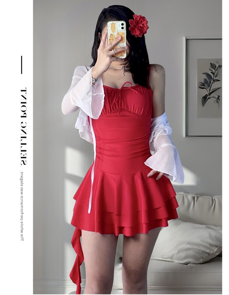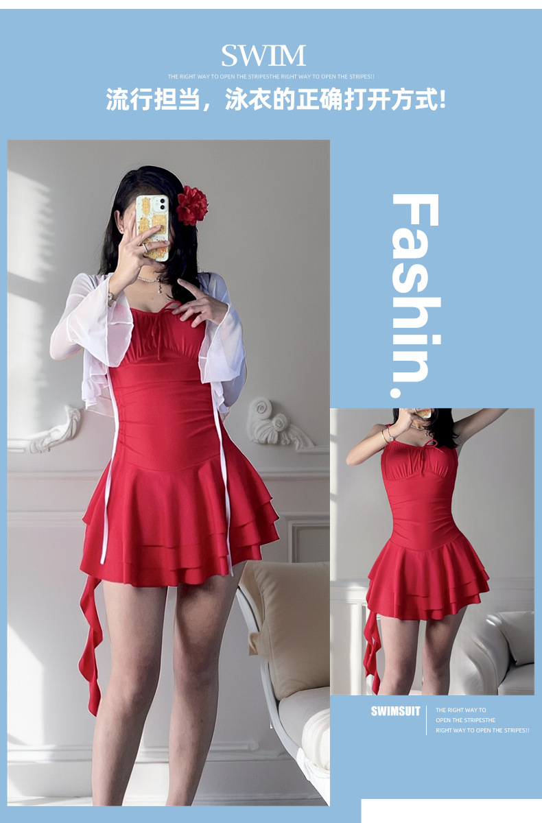 수영복 여성 스커트 스타일 보수적으로 배꼽 슬리밍 한국식 인 슈퍼 요정 소녀의 작은 가슴 모임 하이 엔드 수영복스토어 가기