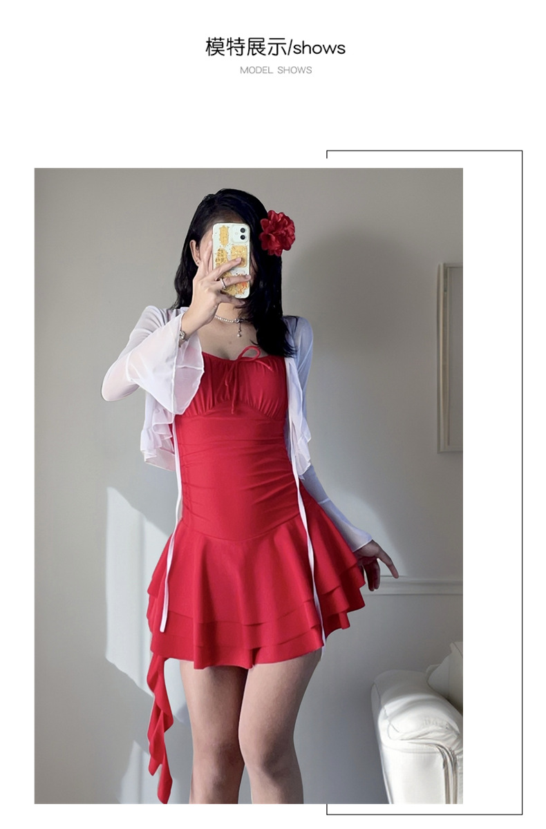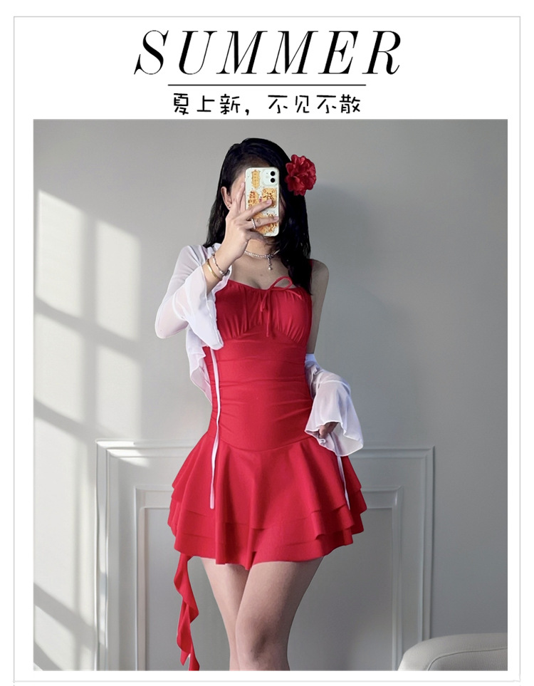 • 레드 9167 - 싱글 수영복 - 머리꽃