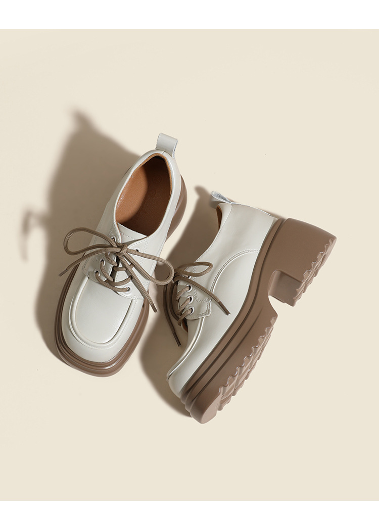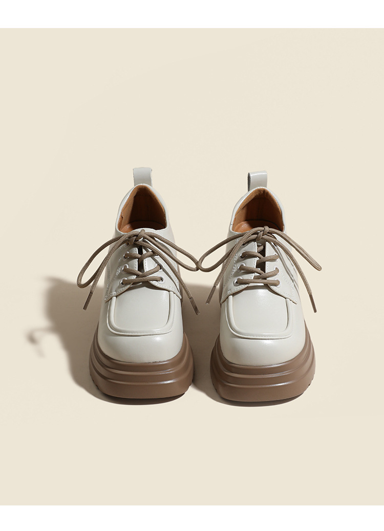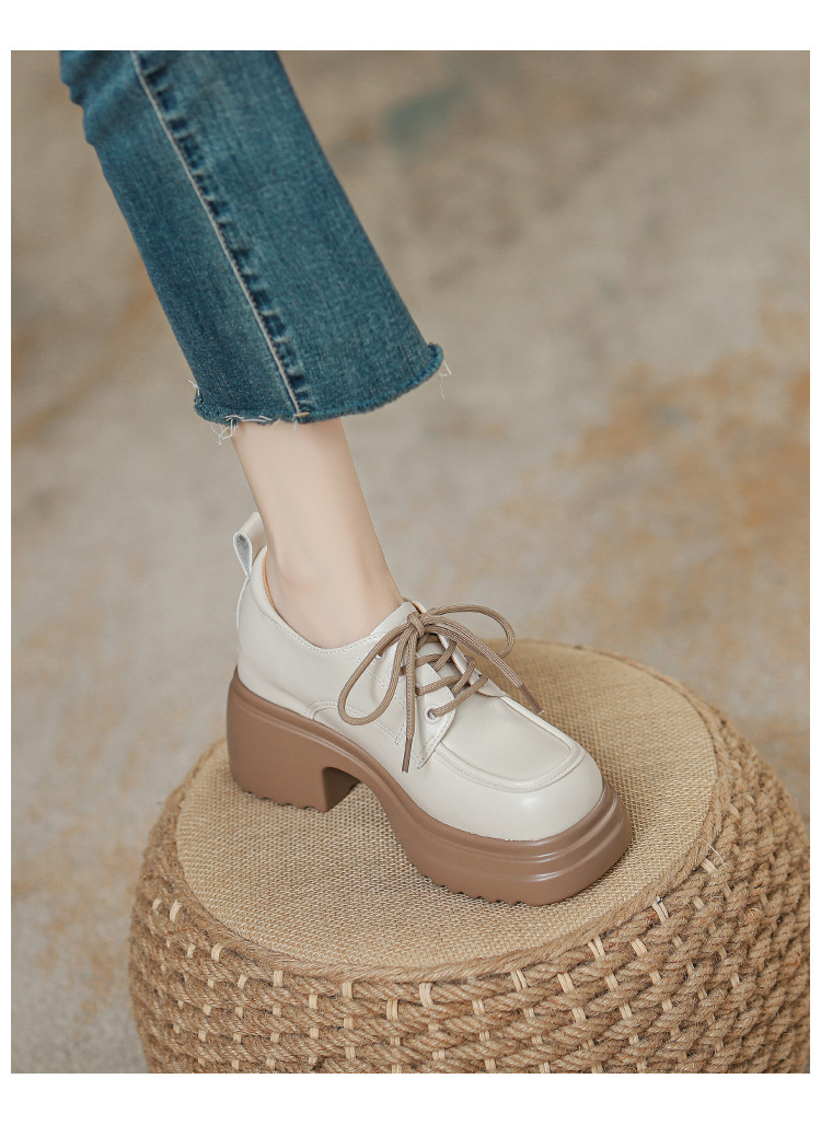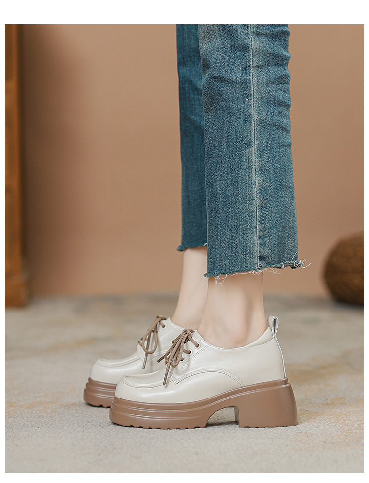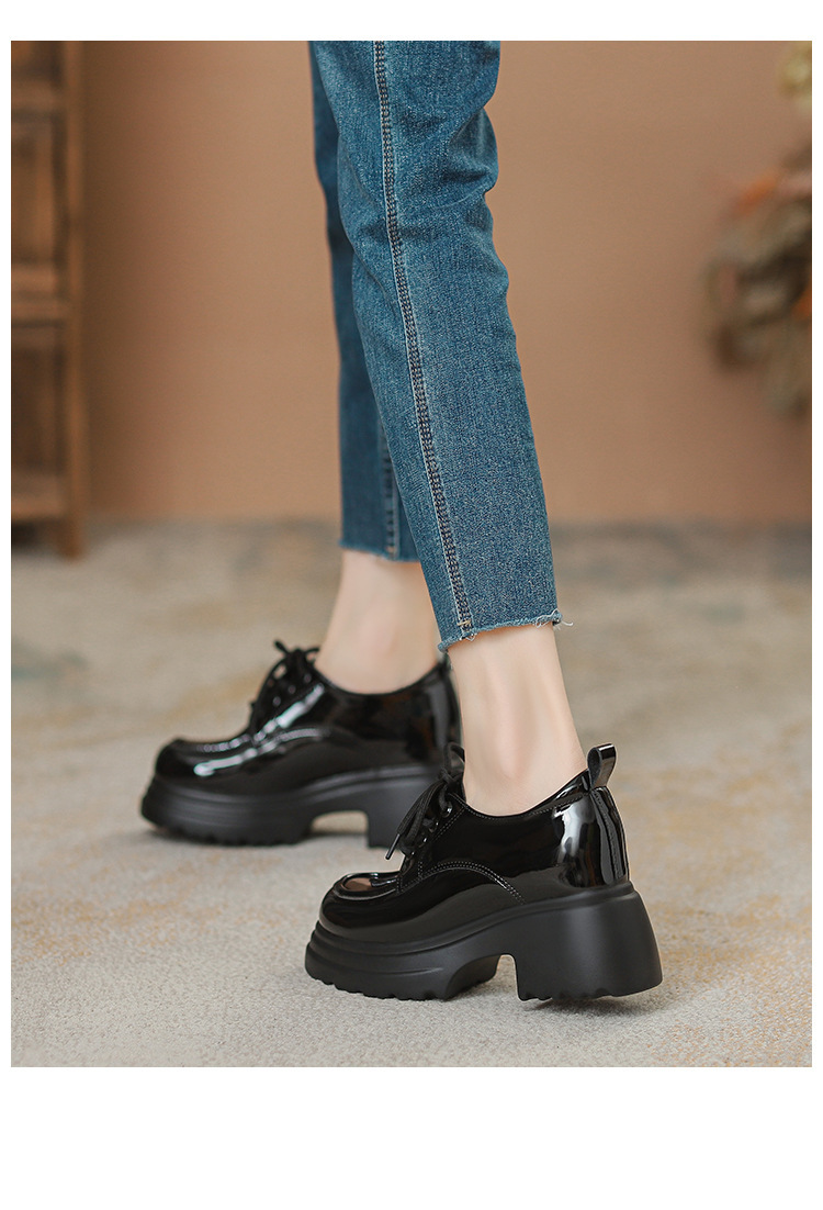 정품 가죽 내부 높이 증가 작은 가죽 신발 여성용 플랫폼 신발 두꺼운 하단 로퍼 다리가없는 레이스 업 9CM 라운드 헤드 딥 입 싱글 레이어 신발스토어 가기
