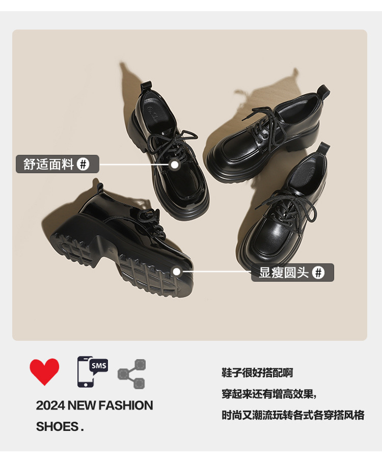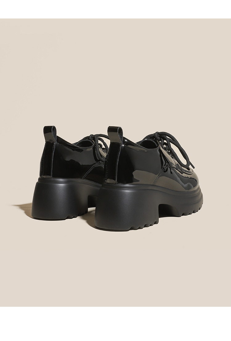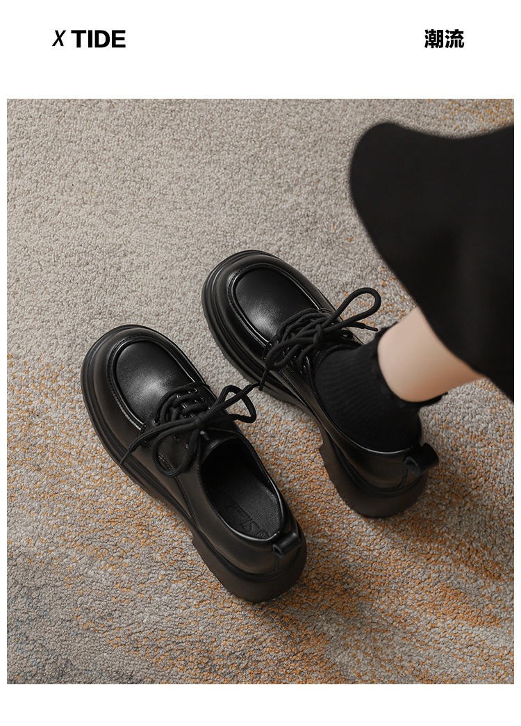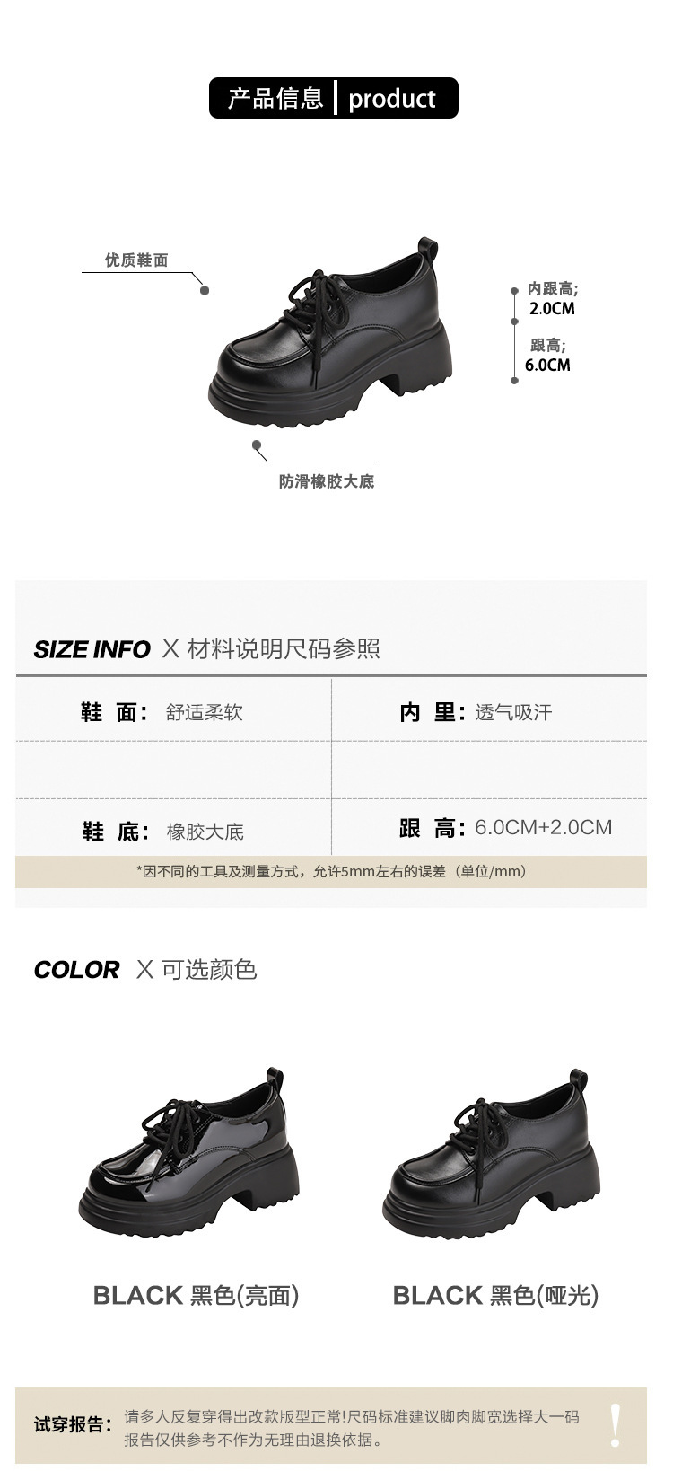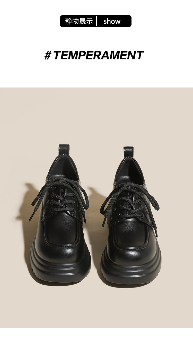 정품 가죽 내부 높이 증가 작은 가죽 신발 여성용 플랫폼 신발 두꺼운 하단 로퍼 다리가없는 레이스 업 9CM 라운드 헤드 딥 입 싱글 레이어 신발스토어 가기