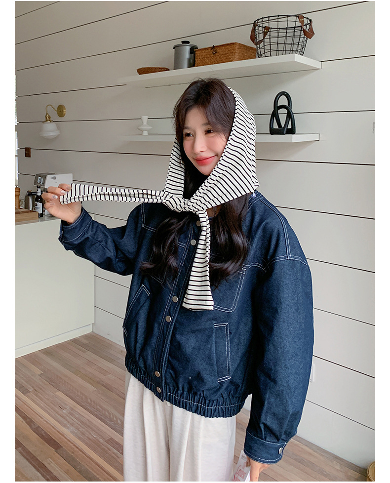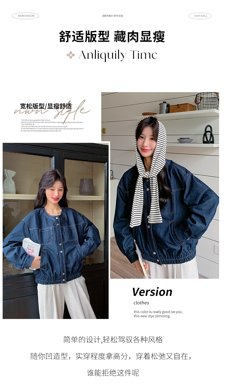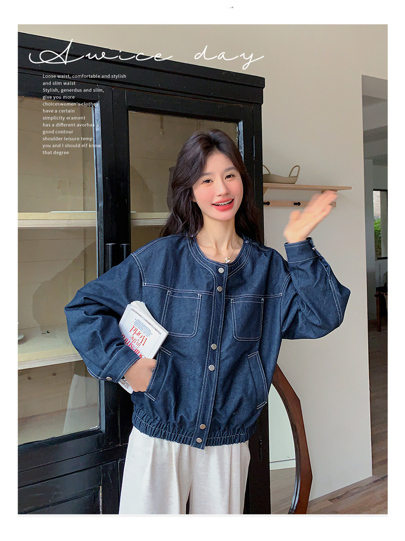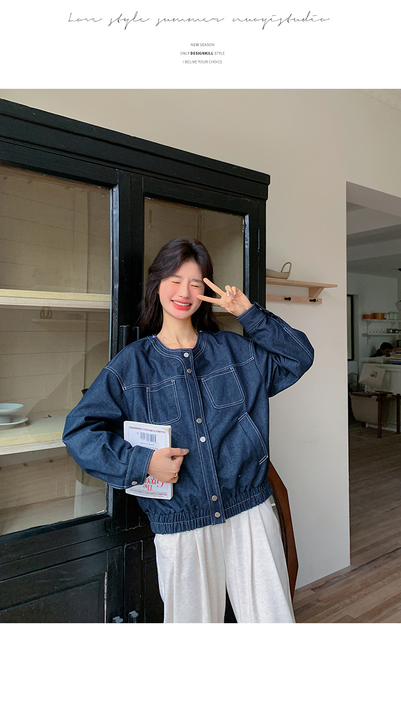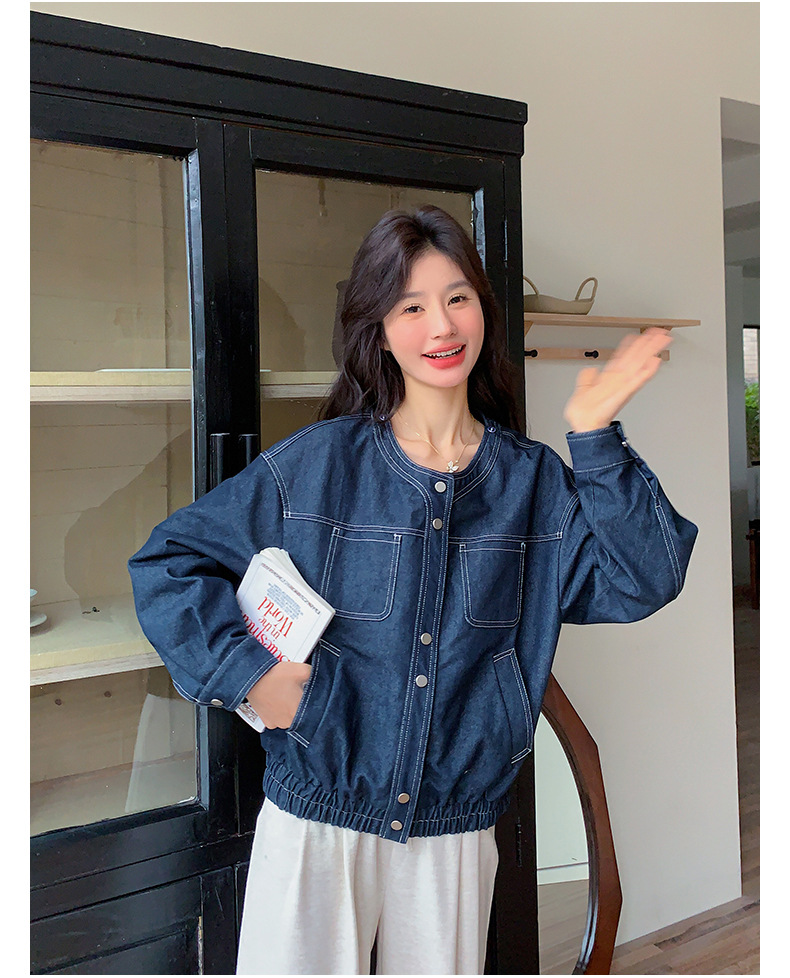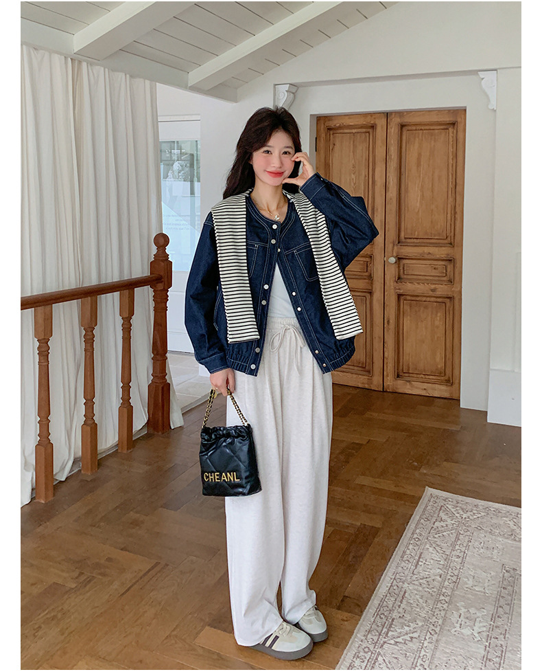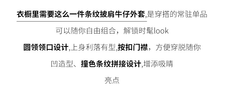 [Mengmei] 25 봄 스타일 패션 기질 라운드 넥 올매치 스트라이프 숄 느슨한 캐주얼 데님 코트 여성 패션스토어 가기