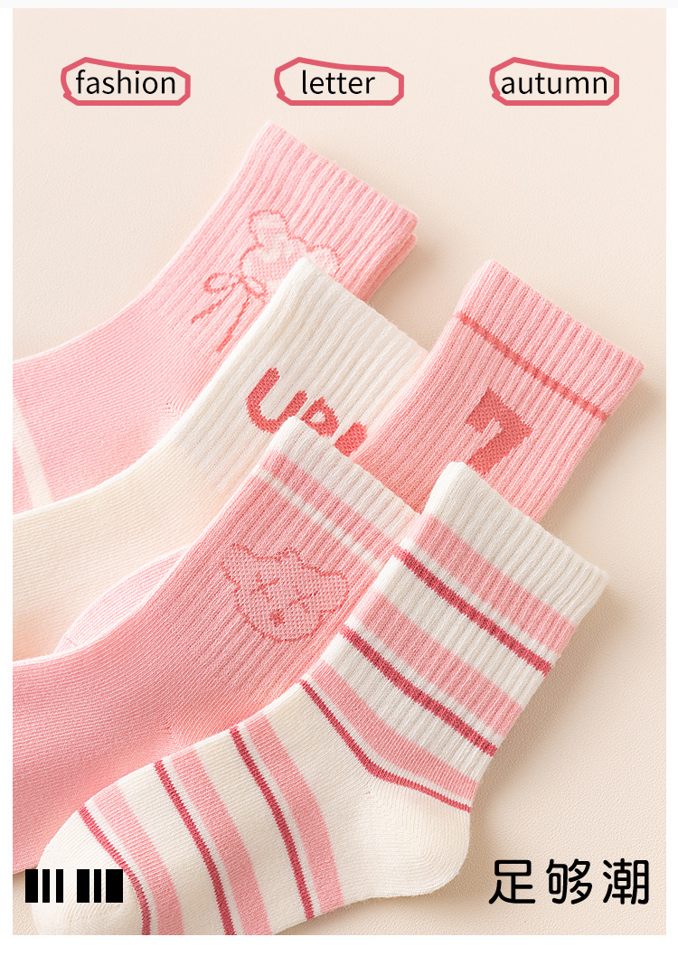 [신제품] 아동용 양말, 여아용 중형 튜브 아기 가을 겨울 대형 아동 대학 스타일 긴 튜브 통기성 스포츠 양말