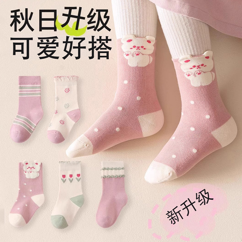 [신제품] 아동용 양말, 여아용 중형 튜브 아기 가을 겨울 대형 아동 대학 스타일 긴 튜브 통기성 스포츠 양말스토어 가기