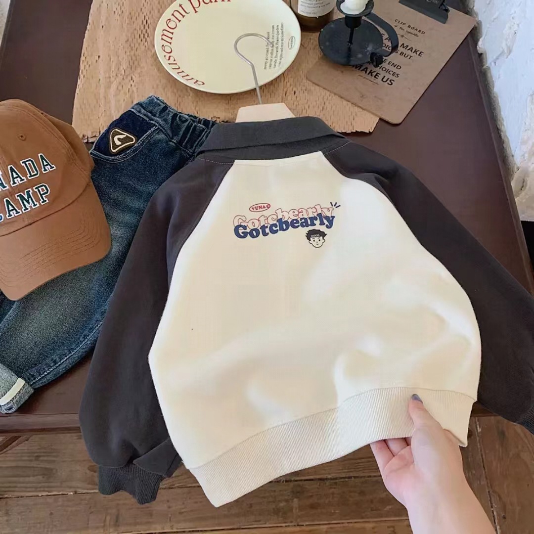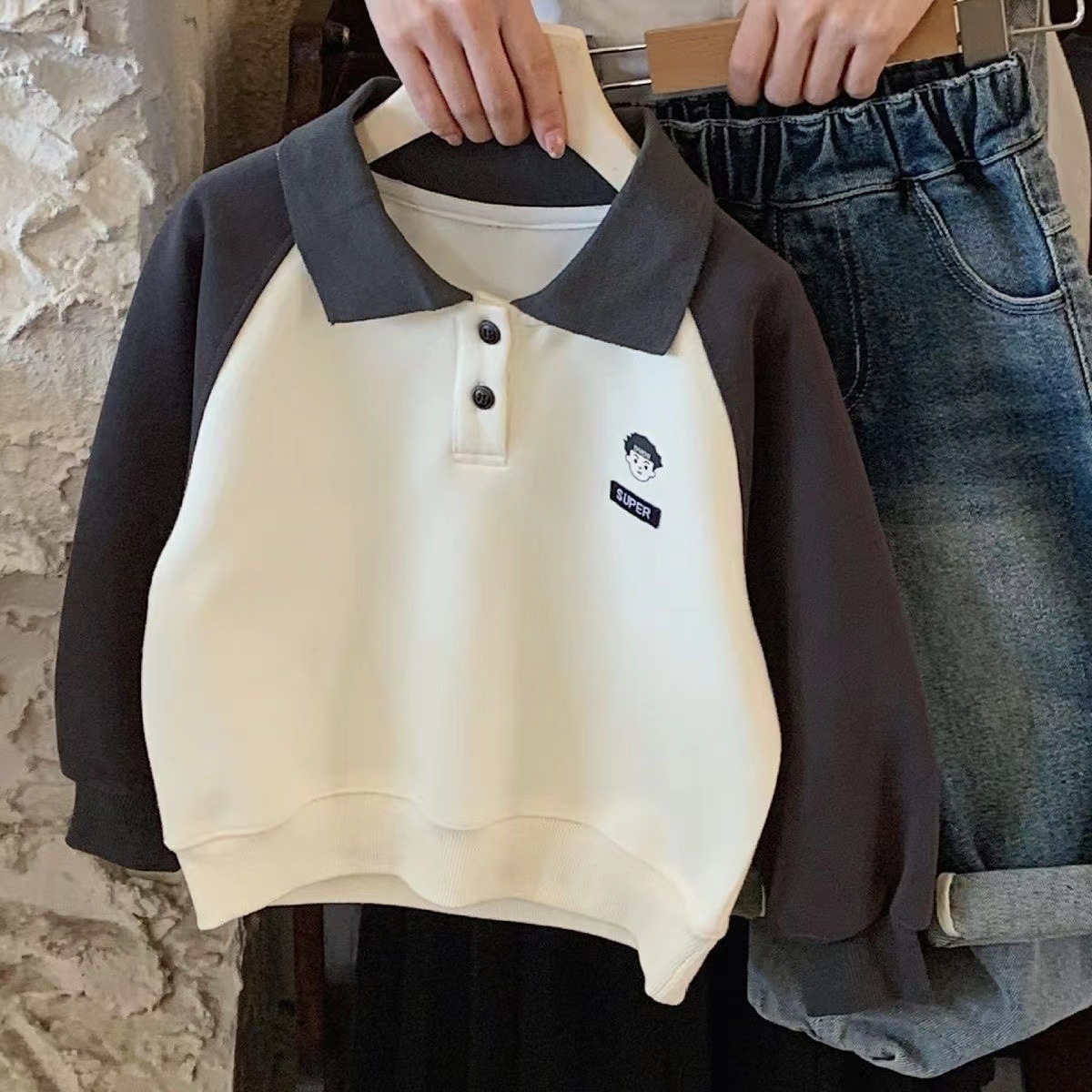 2025 새로운 아동복 어린이 라글란 스웨터 봄과 가을 소년의 원피스 스웨터 트렌디 멋진 POLO 셔츠스토어 가기