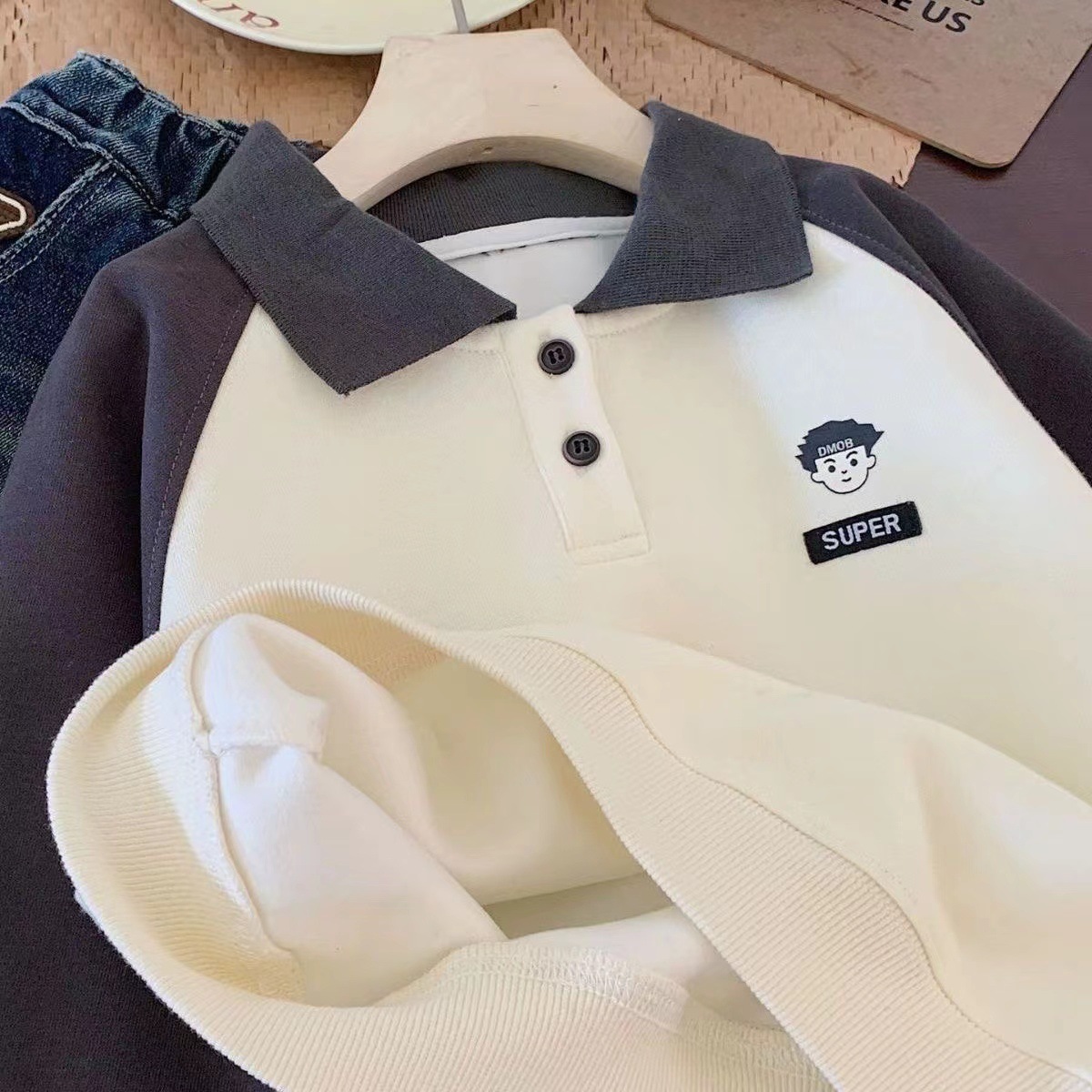 2025 새로운 아동복 어린이 라글란 스웨터 봄과 가을 소년의 원피스 스웨터 트렌디 멋진 POLO 셔츠