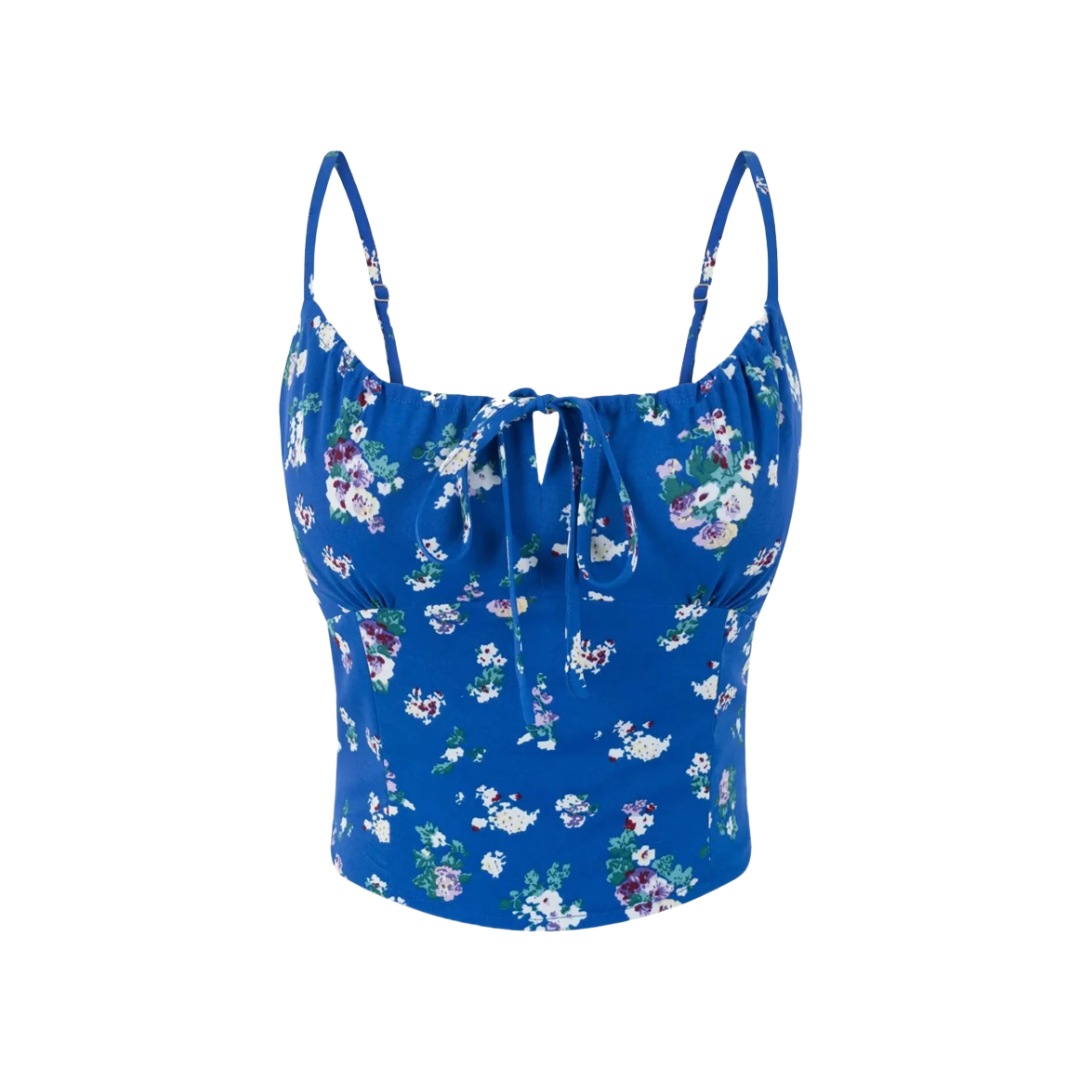 달콤한 상쾌한 인쇄 된 Camisole Chiffon 여성의 등 반 탄성 슬림 핏 울트라 짧은 휴가 탑스토어 가기