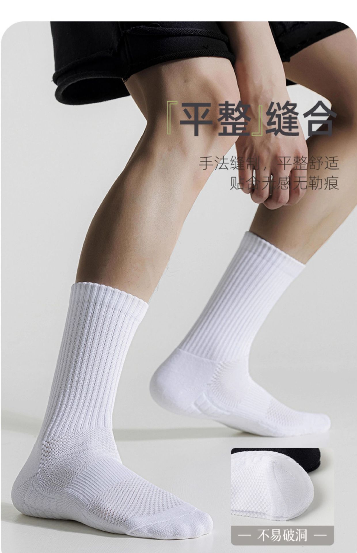 스포츠 양말 남자 봄과 가을 순면 타월 바닥 중간 튜브 남자 양말 두꺼운 바닥 배드민턴 농구 땀 흡수 남자