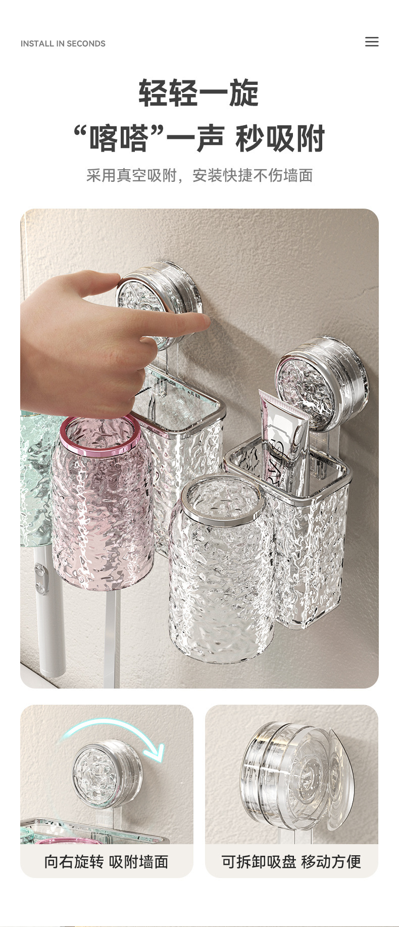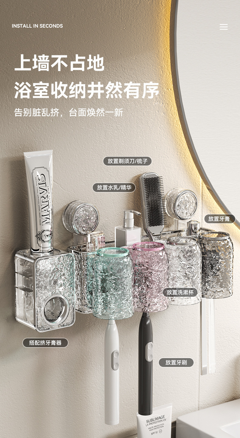 석션 컵 칫솔 보관 랙 구멍이없는 무형 세척 컵 칫솔 컵 화장실 벽걸이 형 치약 전동 칫솔 랙