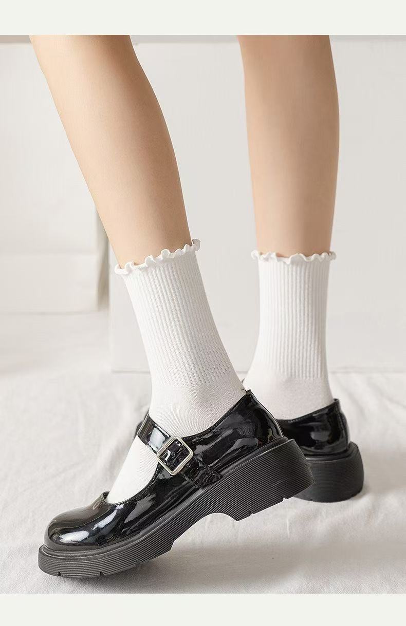 일본 스택 코튼 양말 화이트 레이스 양말 여자 여름 미드 튜브 봄과 가을 우드 이어 여성용 양말 Ins 트렌디 올 매치 JK스토어 가기