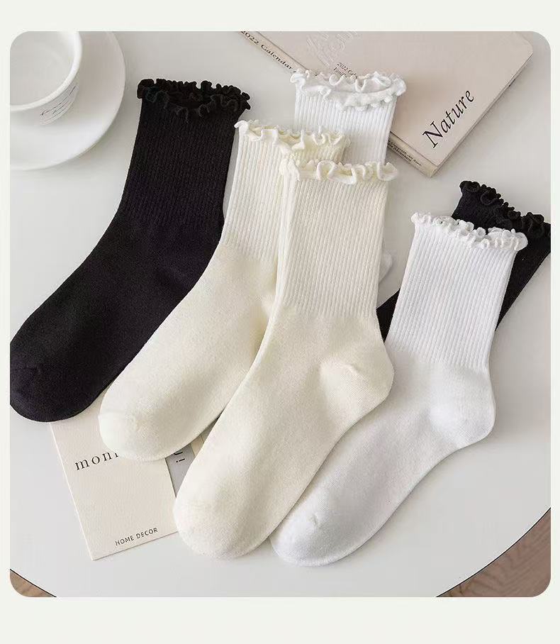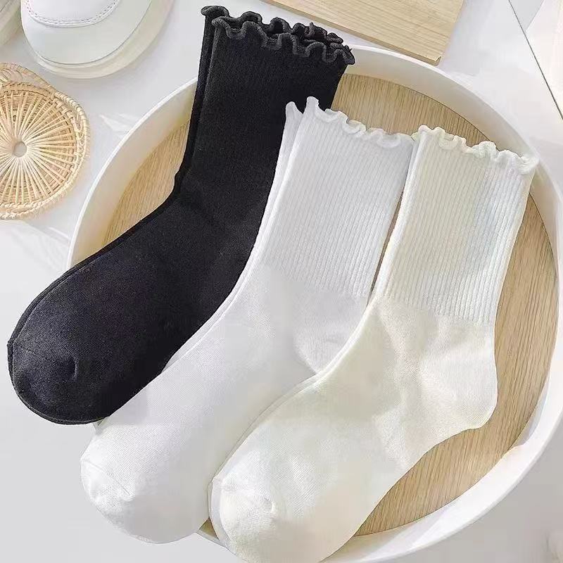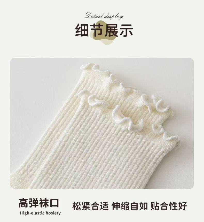 일본 스택 코튼 양말 화이트 레이스 양말 여자 여름 미드 튜브 봄과 가을 우드 이어 여성용 양말 Ins 트렌디 올 매치 JK