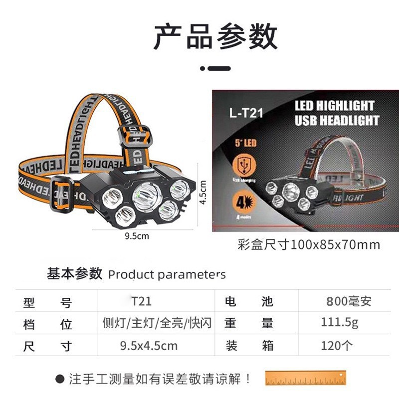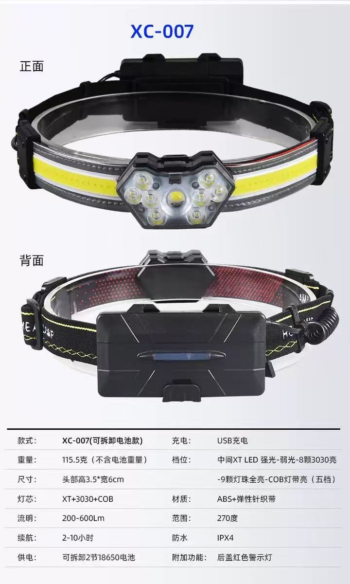 국경을 넘는 다기능 강력한 헤드라이트 충전식 야외 조명 헤드 장착형 러닝 적색광 경고 투광 야간 라이딩 라이트