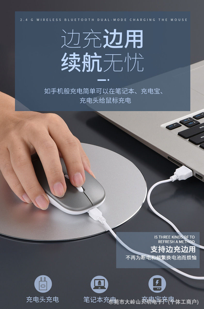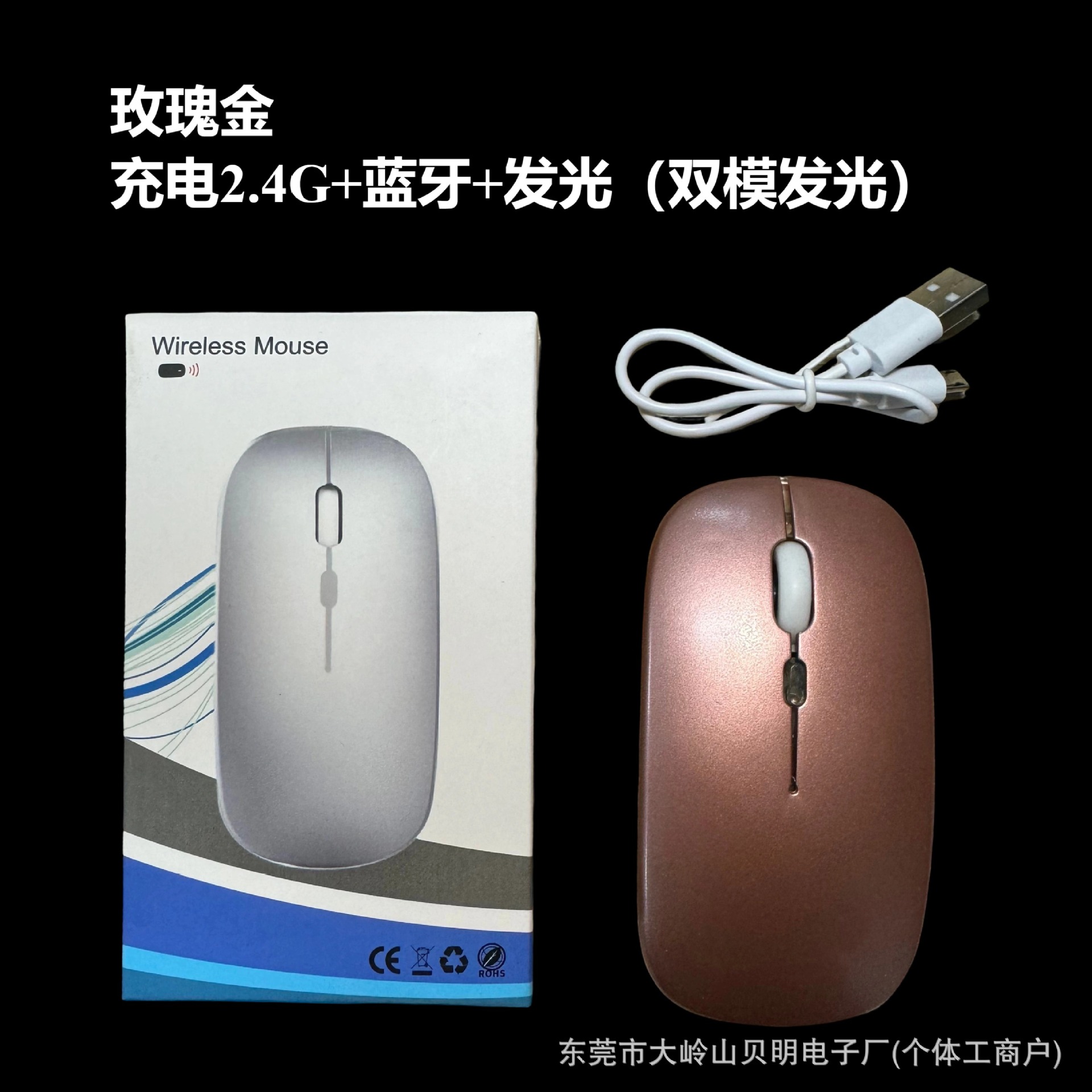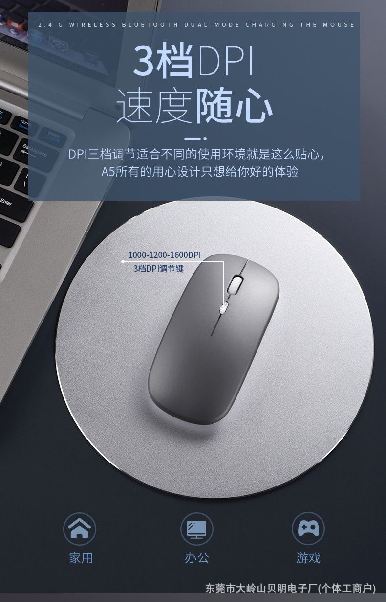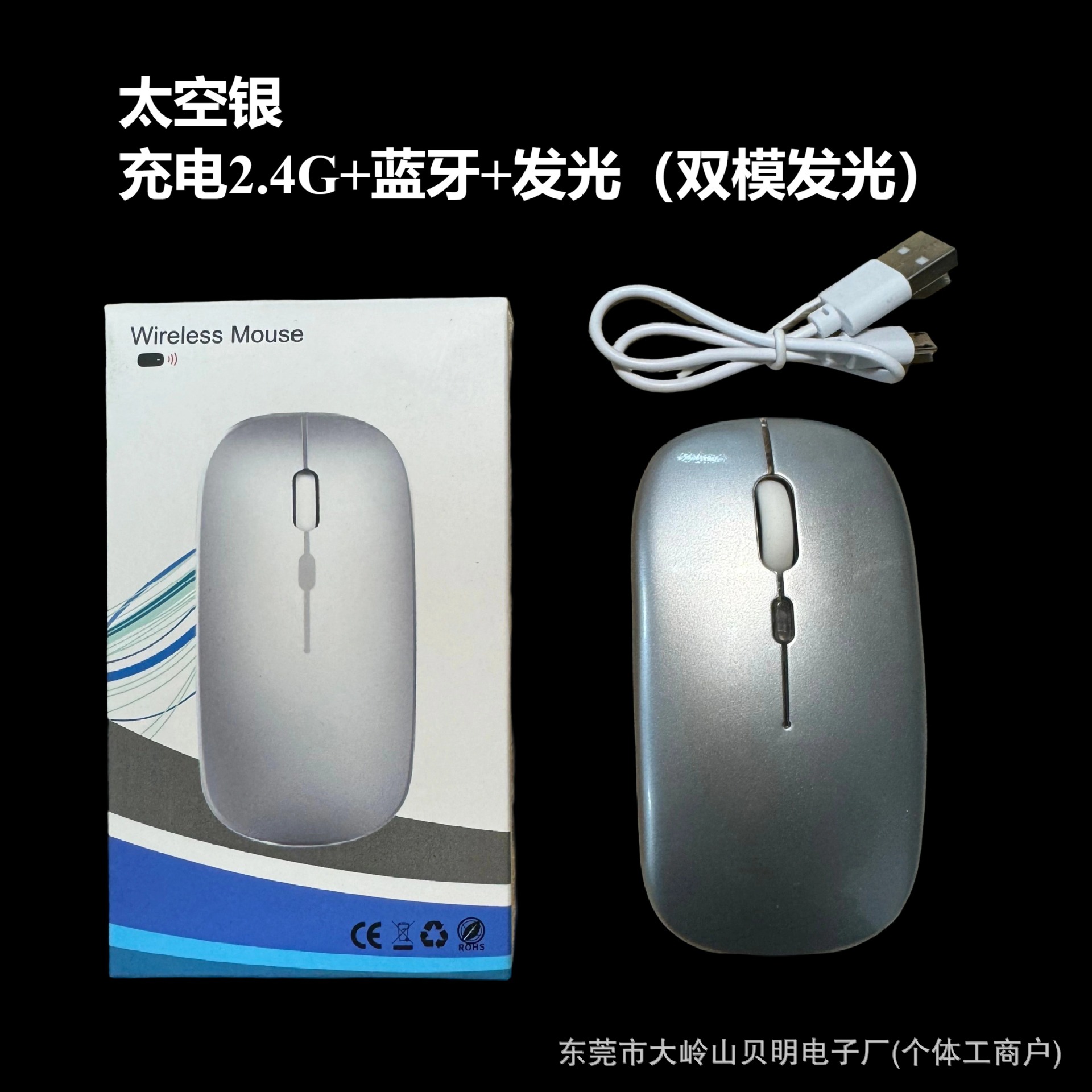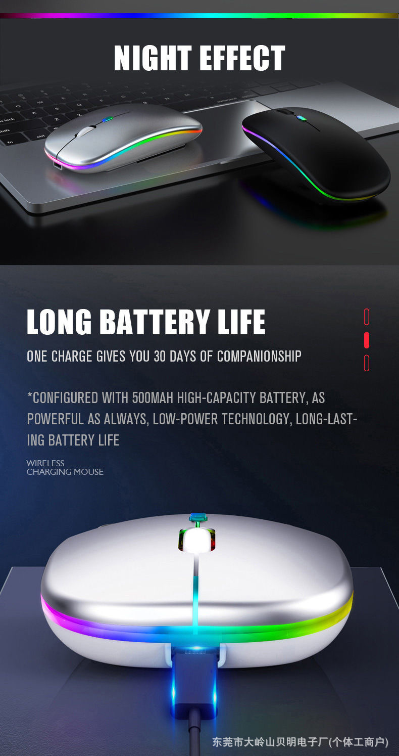 공장 재고 국경 간 블루투스 듀얼 모드 무선 마우스 음소거 초박형 오피스 태블릿 비즈니스 발광 마우스스토어 가기