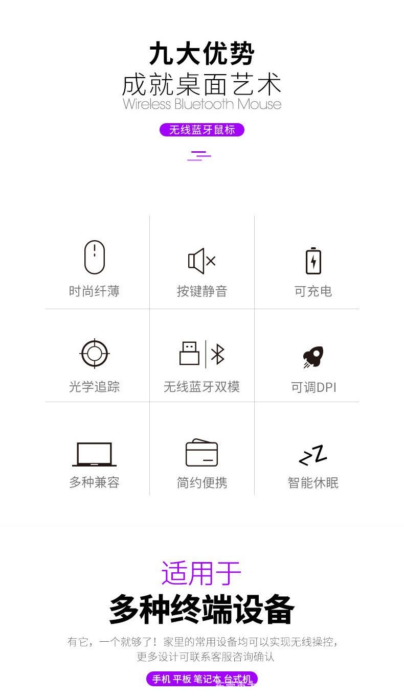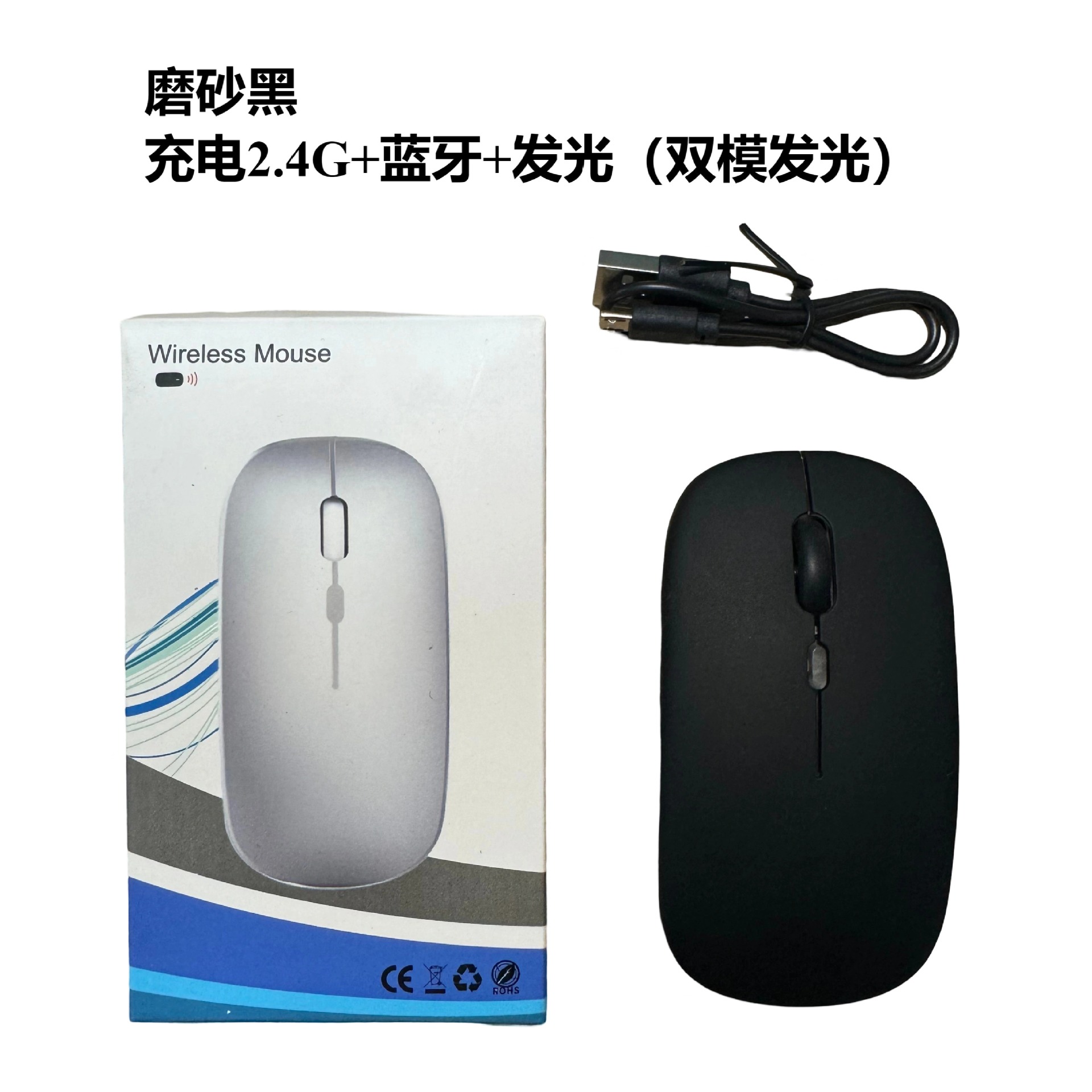 공장 재고 국경 간 블루투스 듀얼 모드 무선 마우스 음소거 초박형 오피스 태블릿 비즈니스 발광 마우스