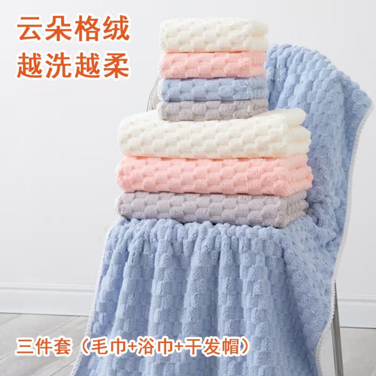 산호 양털 구름 수건 목욕 타월 샤워 캡 세트 가정용 두꺼운 물 흡수 얼굴 타월 목욕 타월 마른 머리 감싸는 머리 스카프