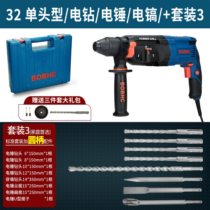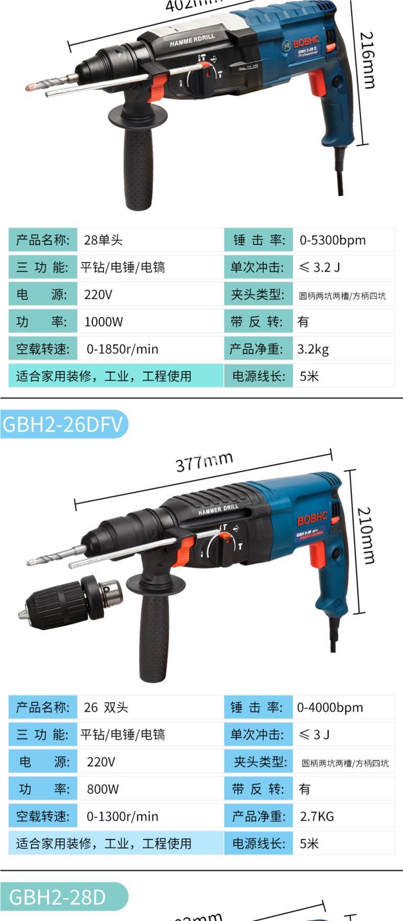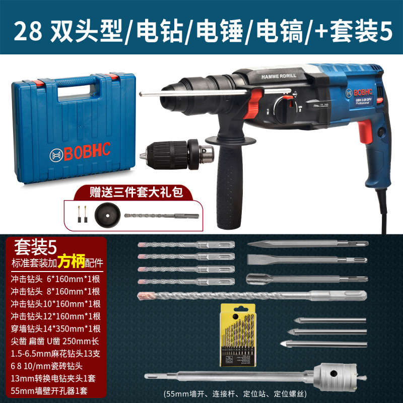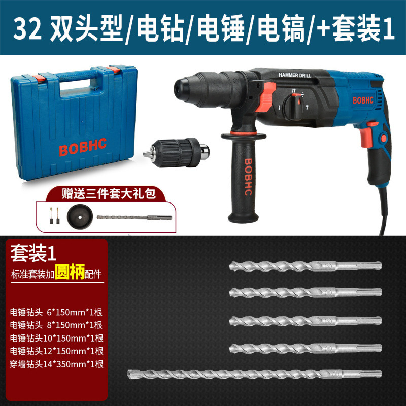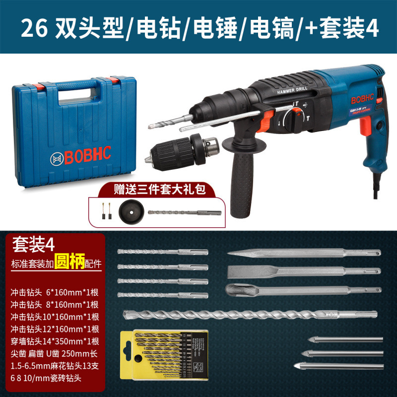전기 해머 타악기 드릴 전기 드릴 가정용 다기능 콘크리트 벽 구멍 빛 높은 전력 산업 등급 Luo Yuan스토어 가기