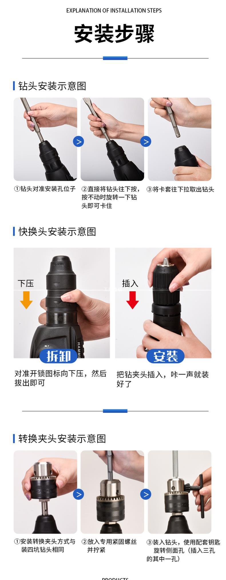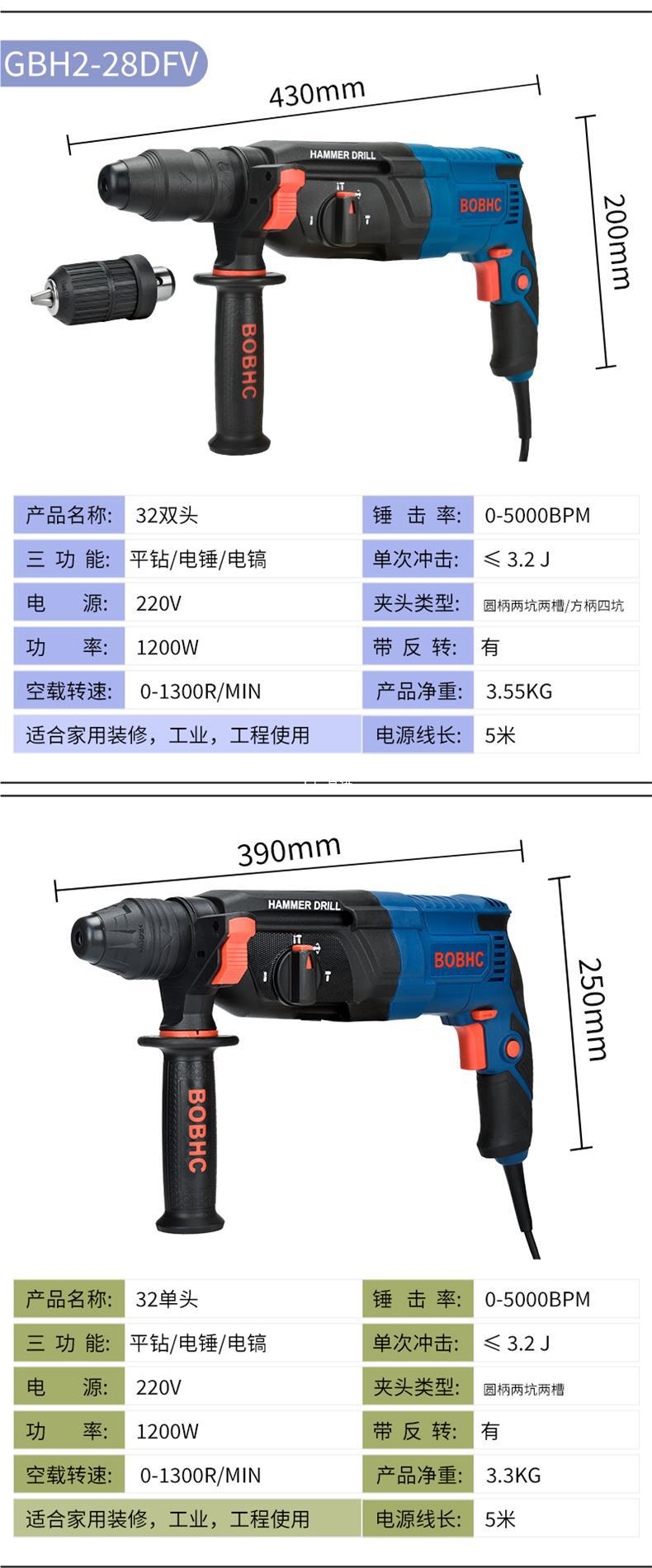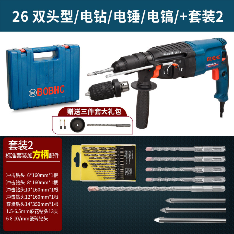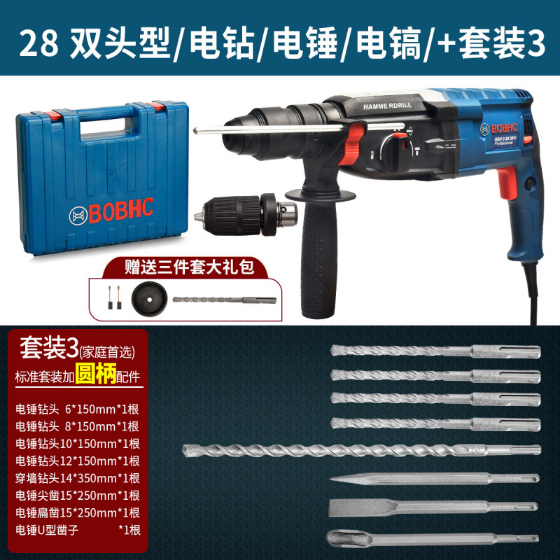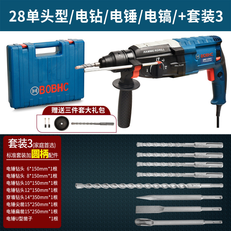 전기 해머 타악기 드릴 전기 드릴 가정용 다기능 콘크리트 벽 구멍 빛 높은 전력 산업 등급 Luo Yuan스토어 가기