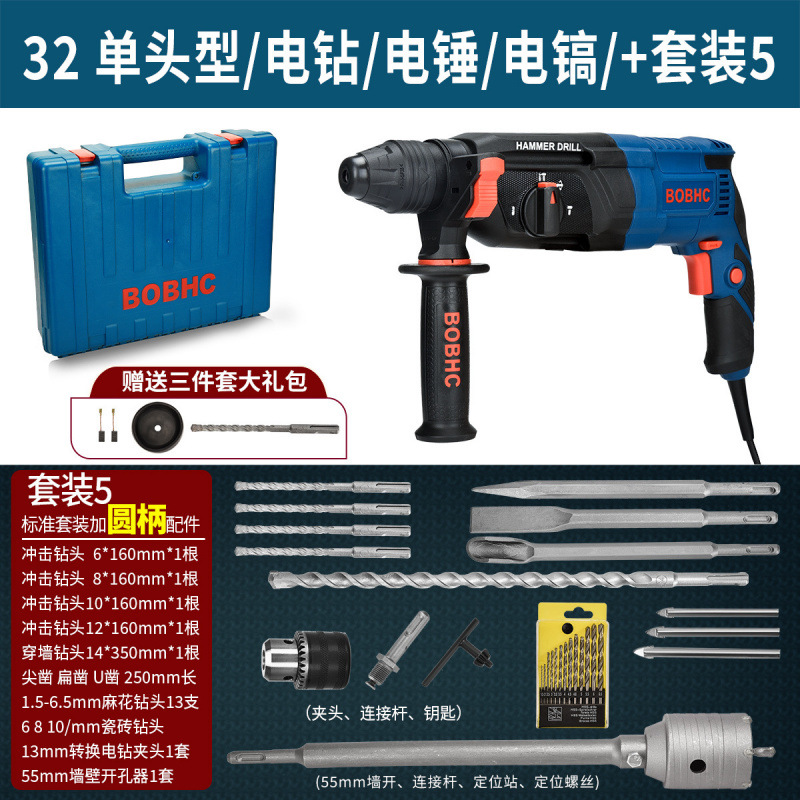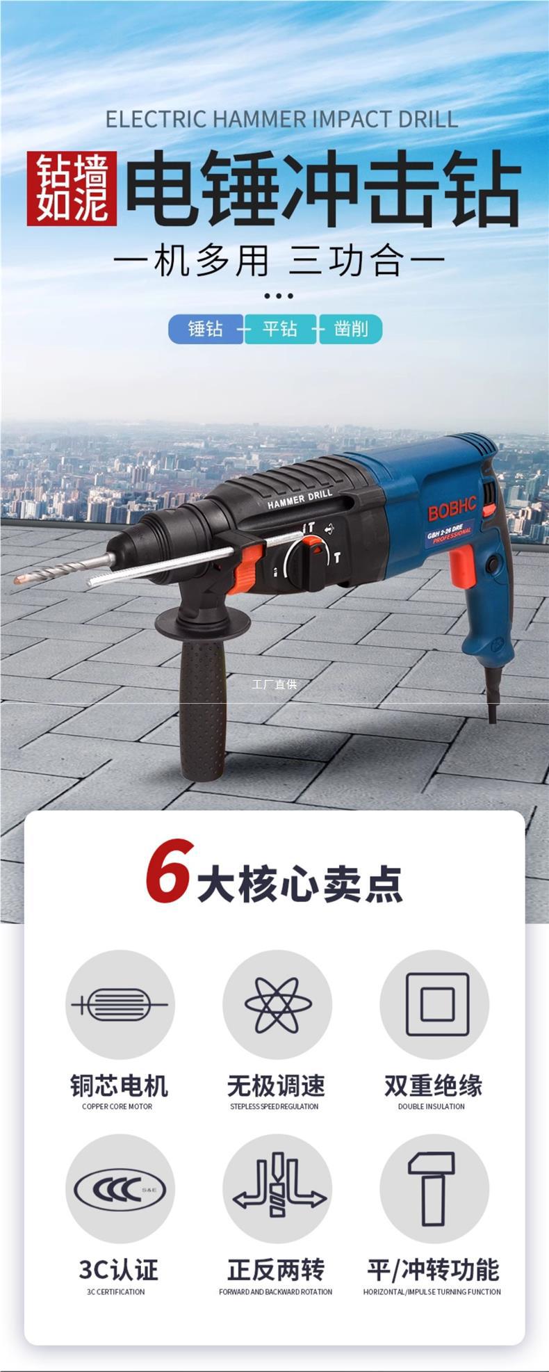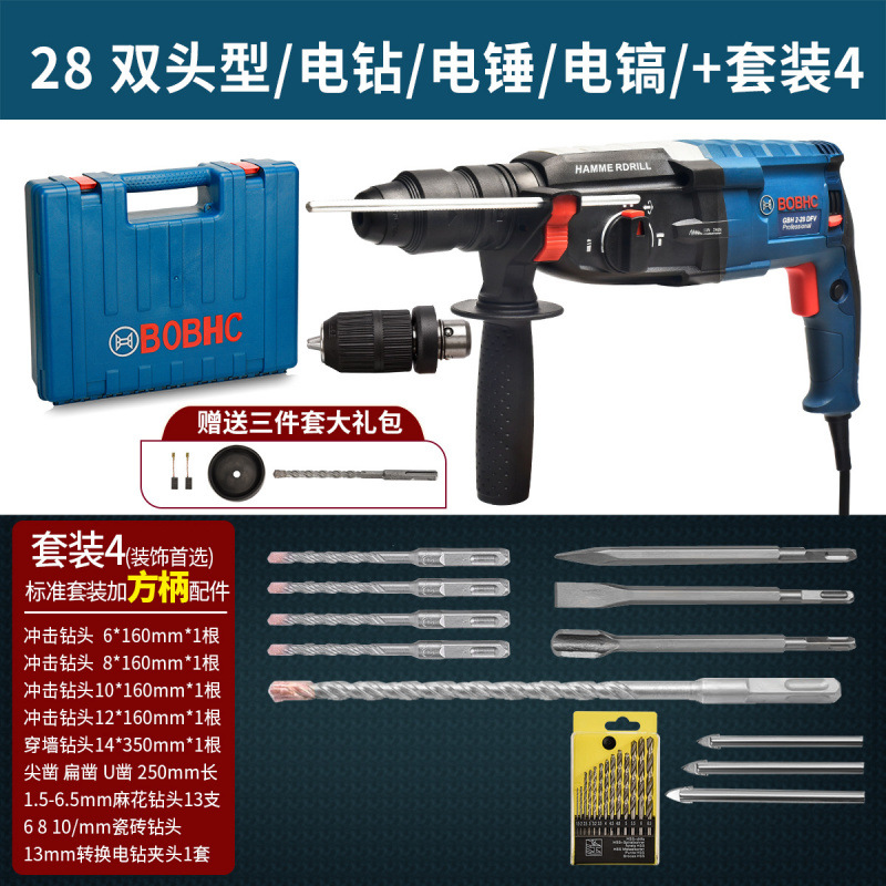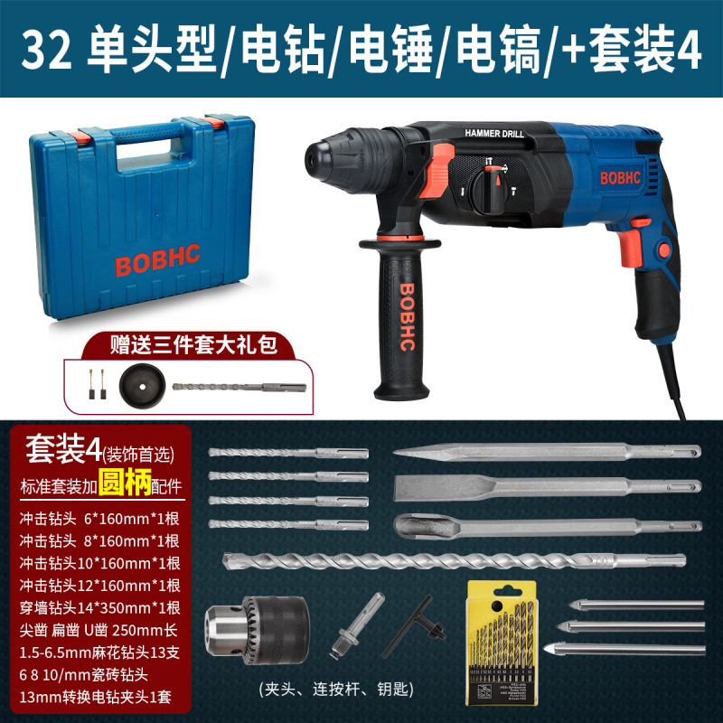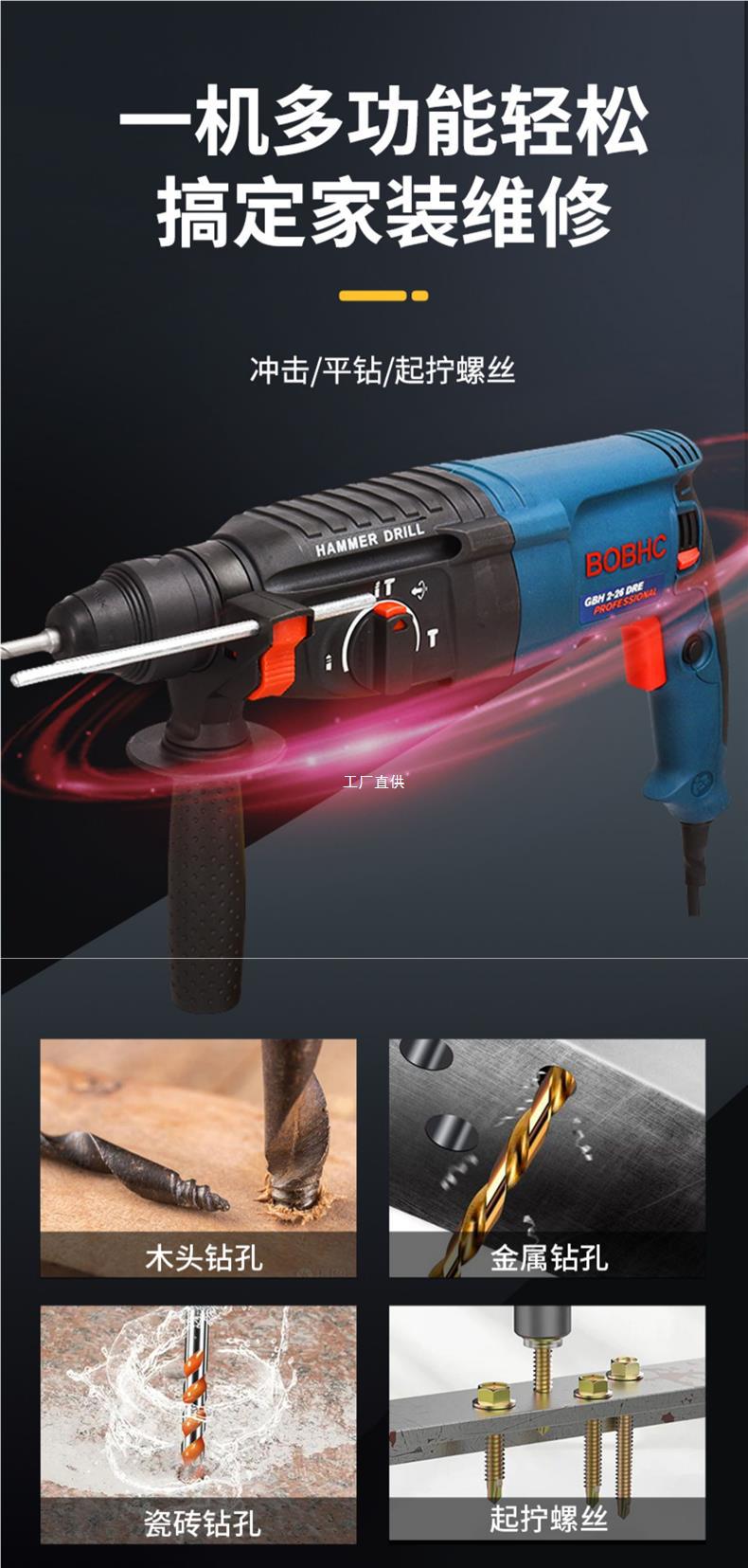 전기 해머 타악기 드릴 전기 드릴 가정용 다기능 콘크리트 벽 구멍 빛 높은 전력 산업 등급 Luo Yuan