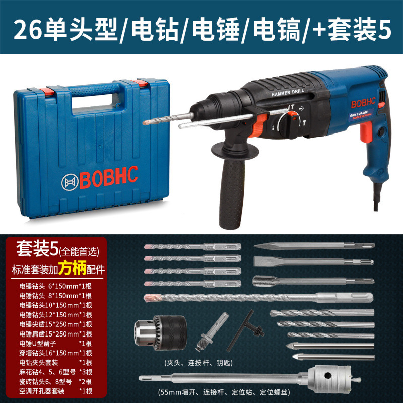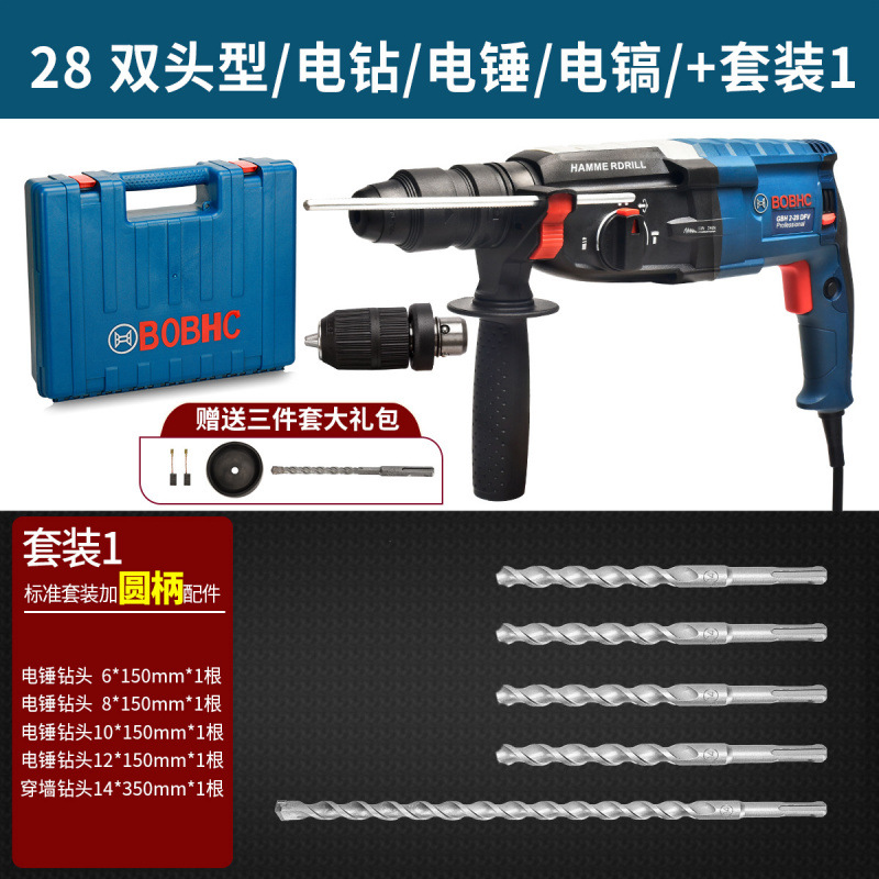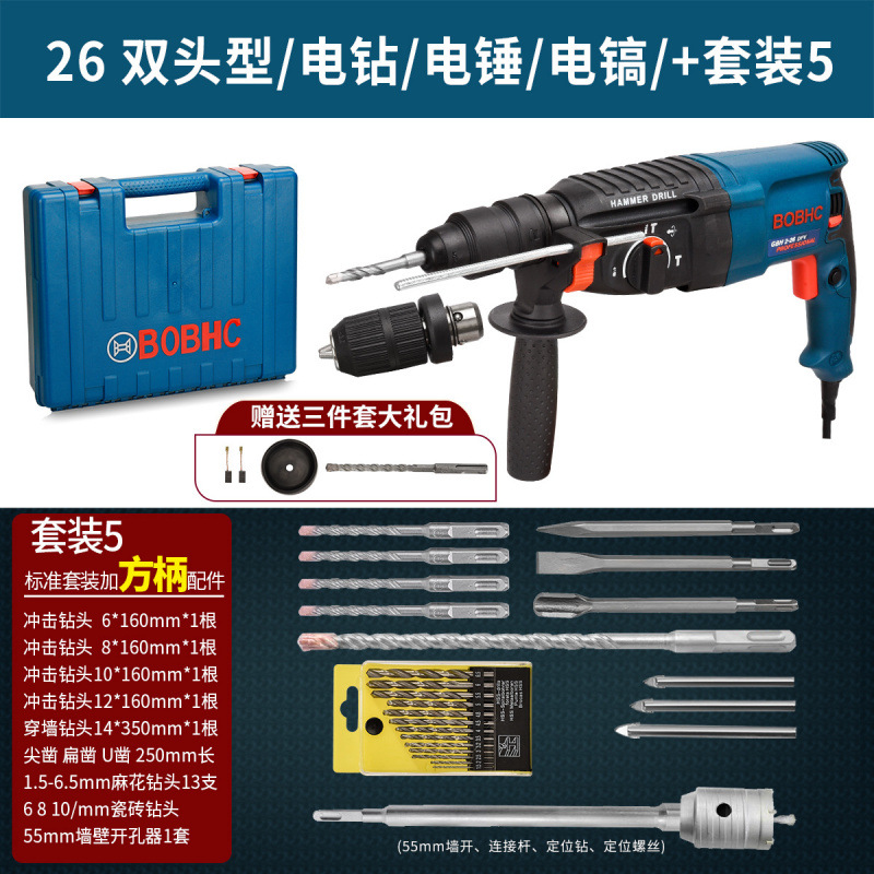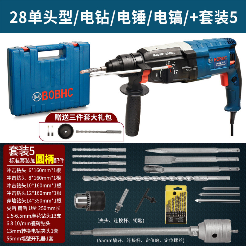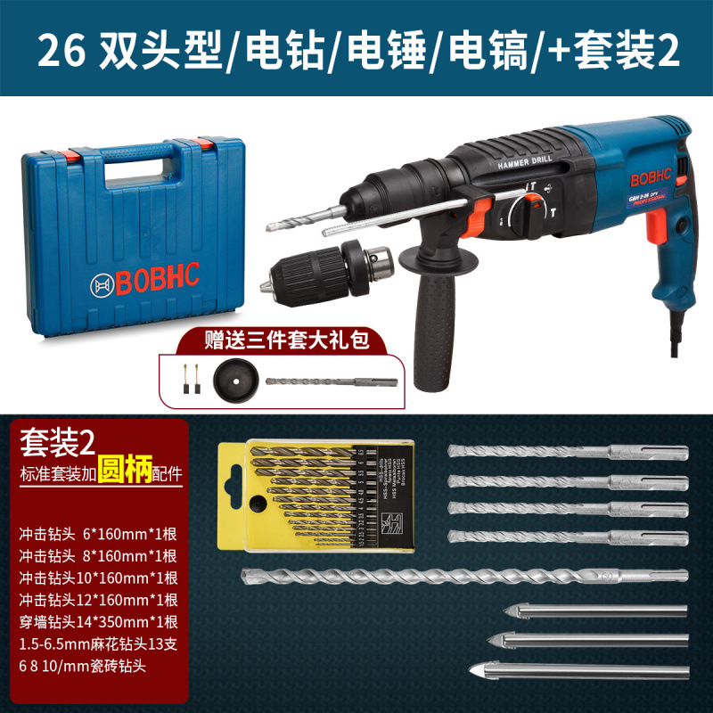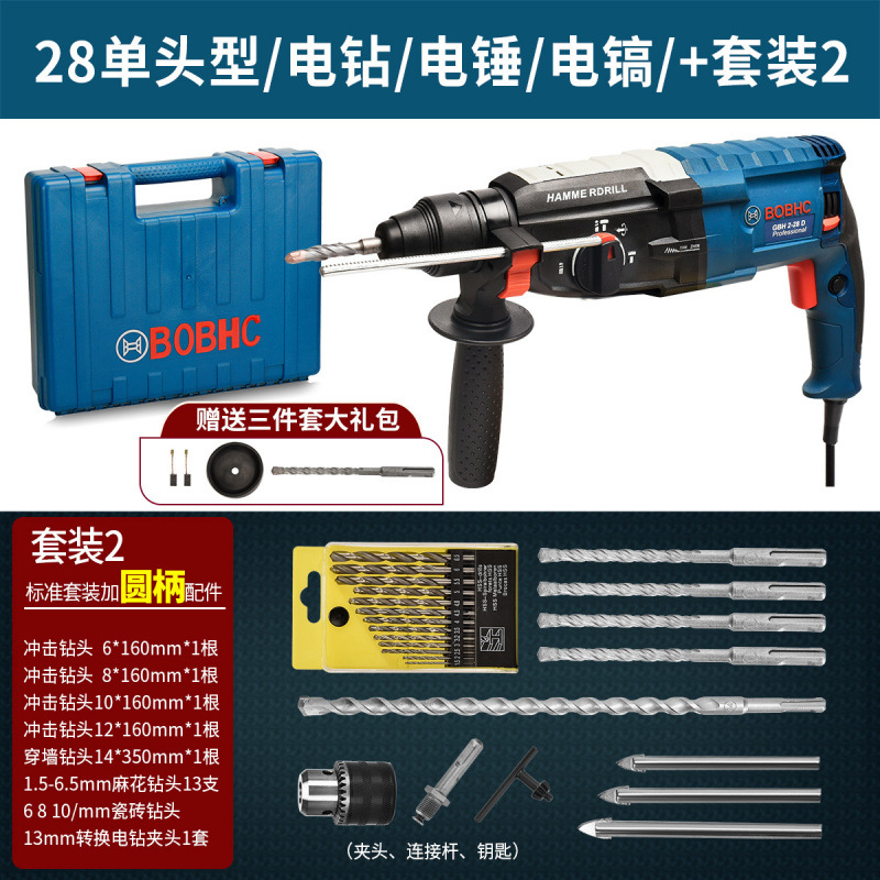 전기 해머 타악기 드릴 전기 드릴 가정용 다기능 콘크리트 벽 구멍 빛 높은 전력 산업 등급 Luo Yuan