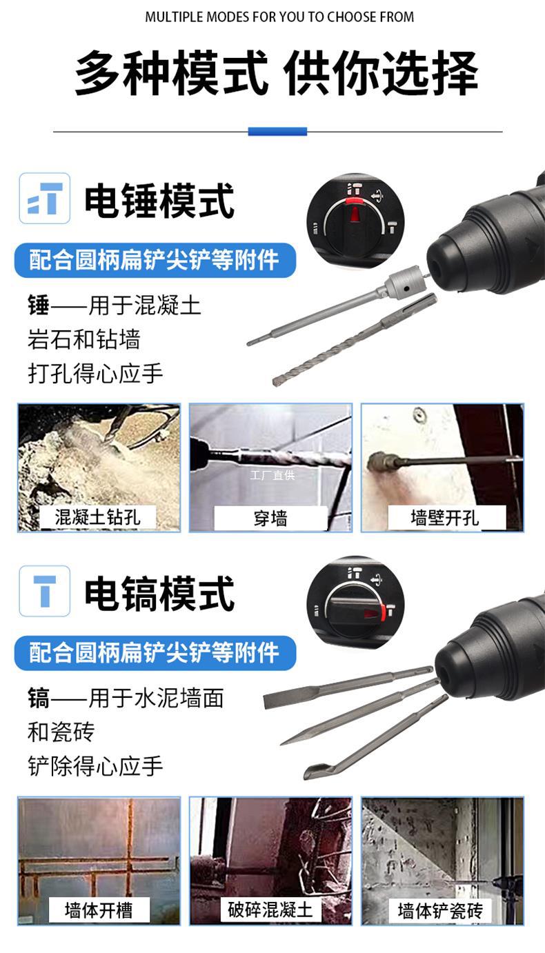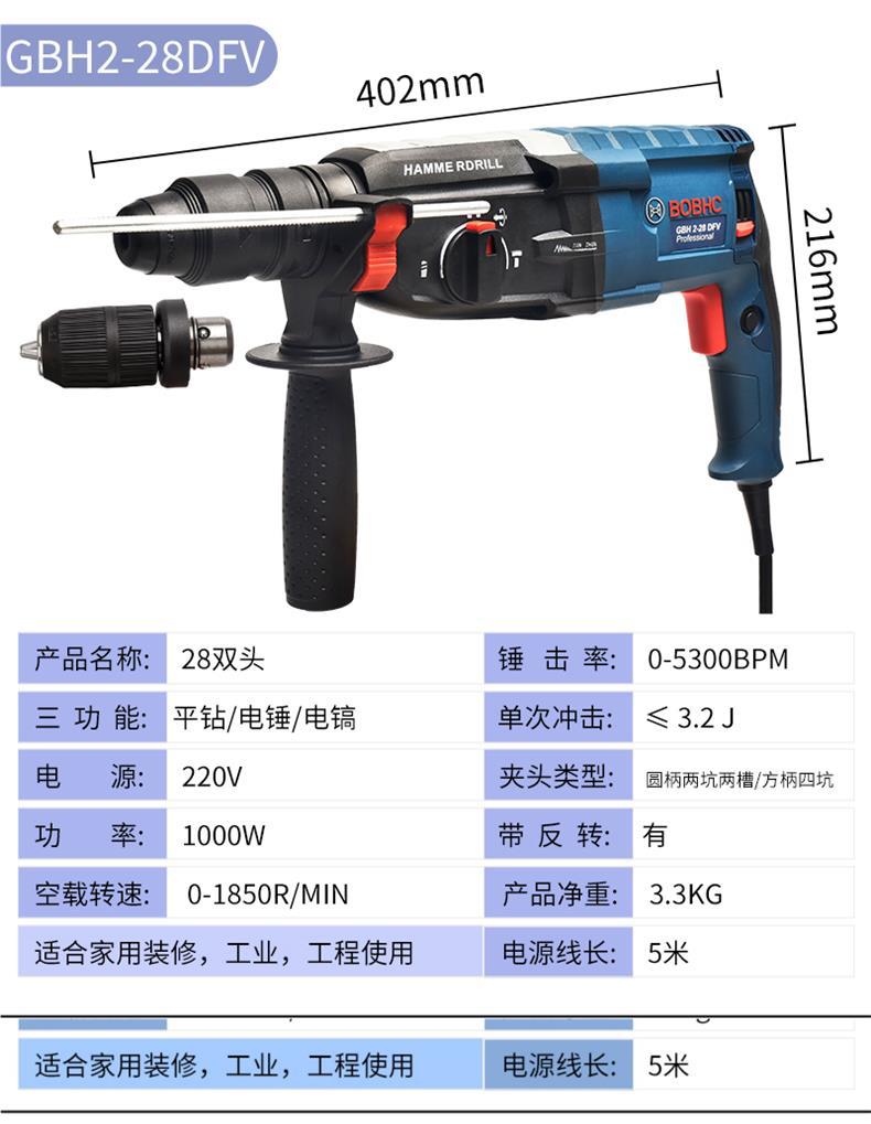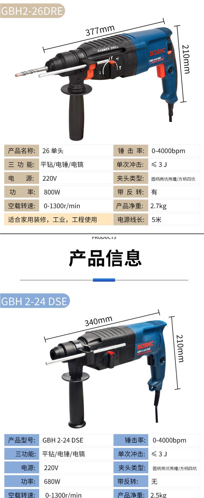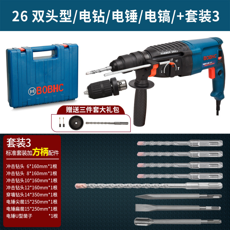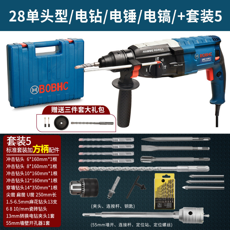 전기 해머 타악기 드릴 전기 드릴 가정용 다기능 콘크리트 벽 구멍 빛 높은 전력 산업 등급 Luo Yuan