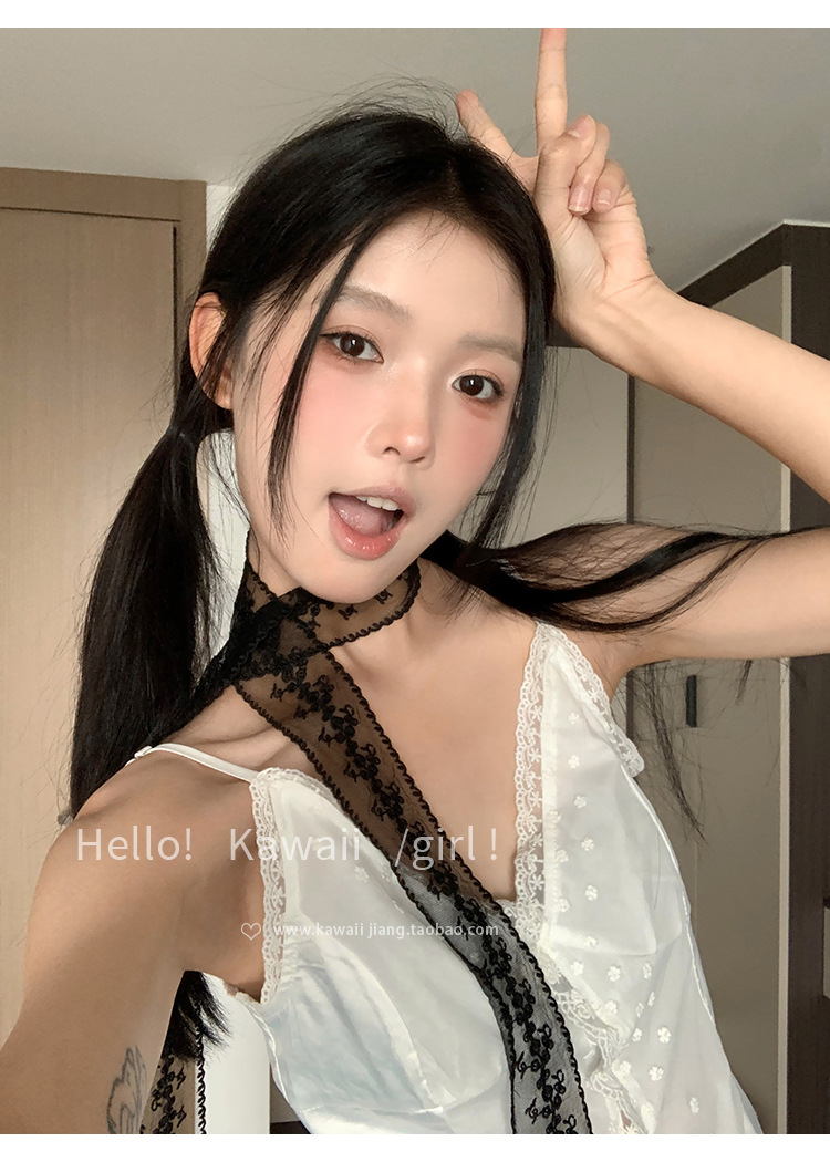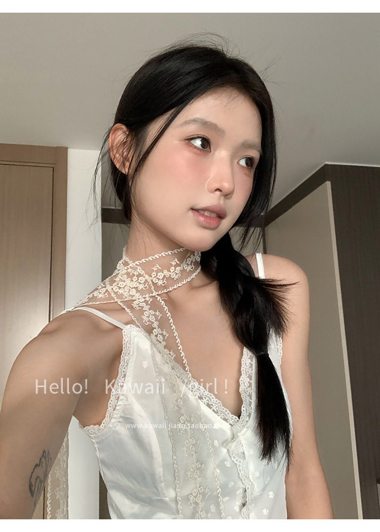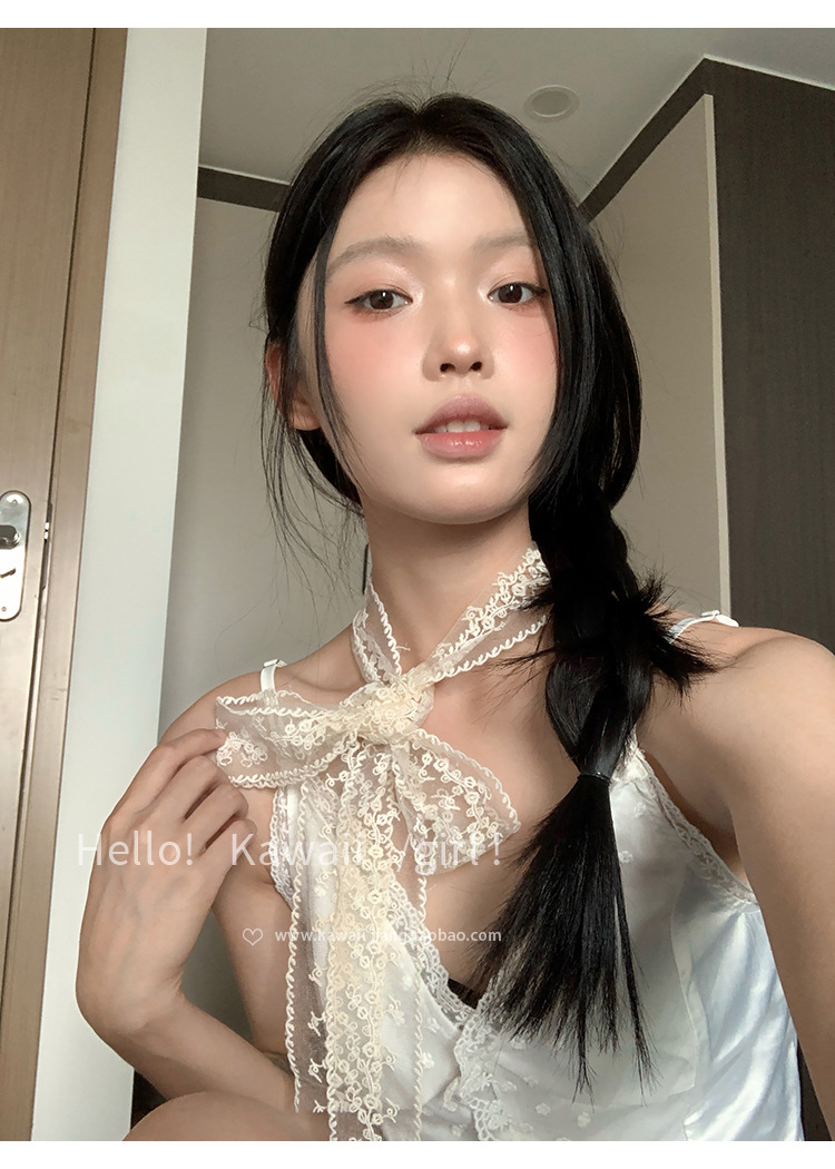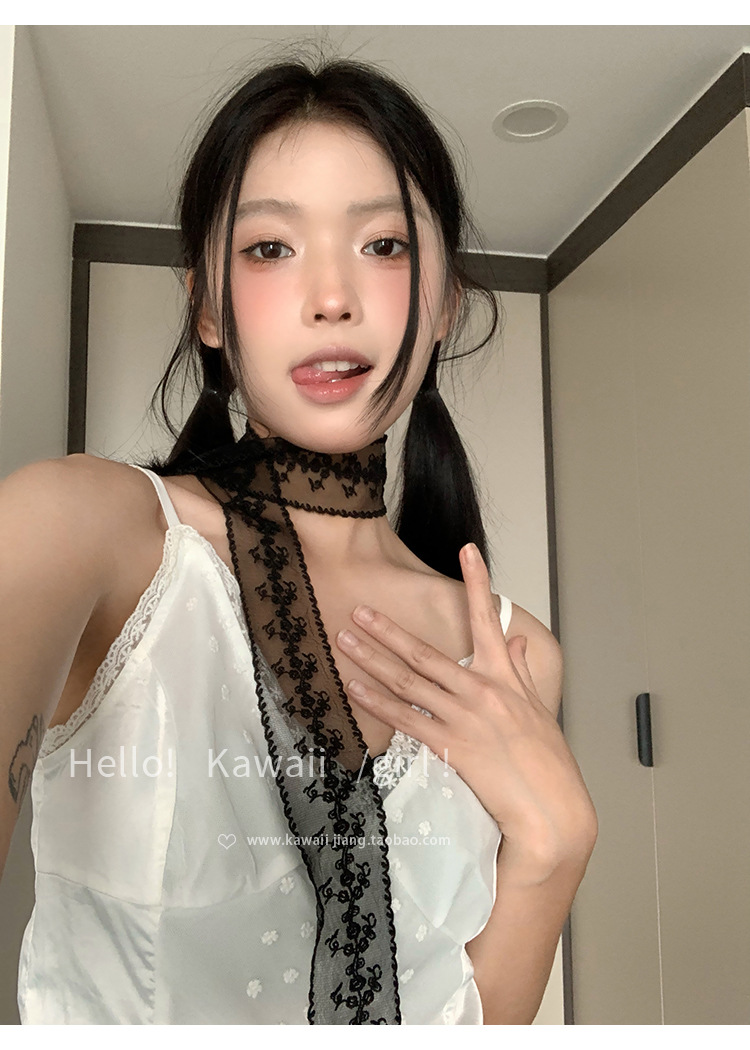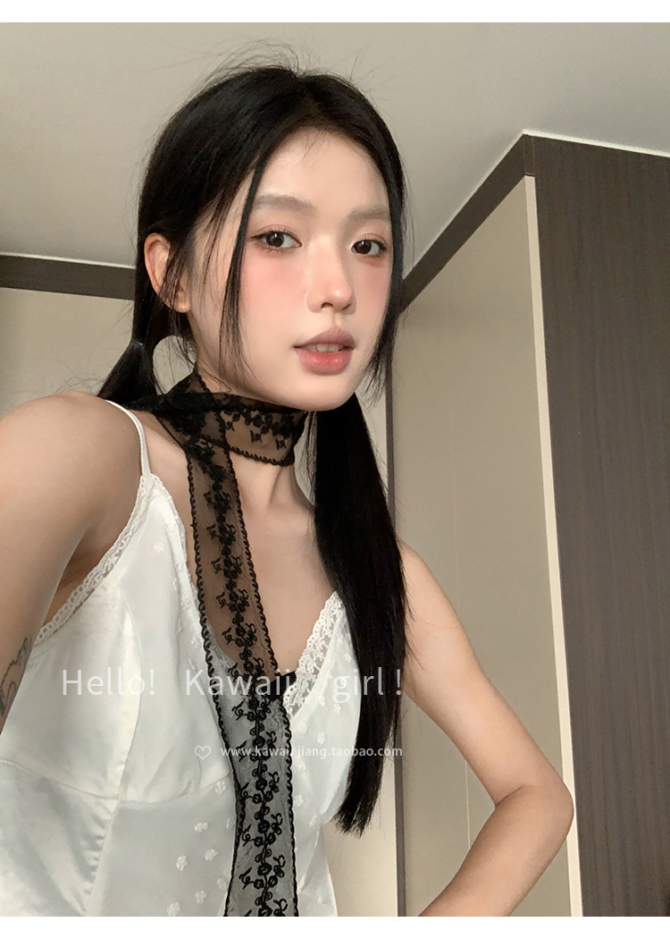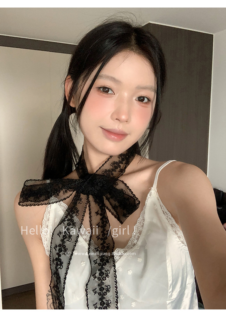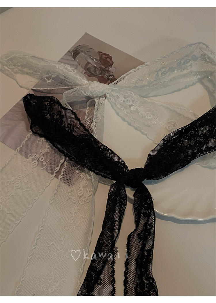 한국 스타일 블랙 순수한 욕망 레이스 리본 여성의 얇은 실크 스카프 헤어 밴드 타이 헤어 빈티지 장식 스카프 벨트 봄과 여름스토어 가기