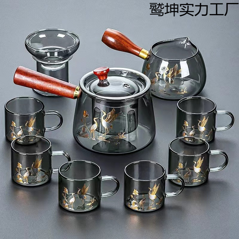 연기가 자욱한 회색 유리 차 세트 세트 가구 빛 고급 고급 고급 고급 투명 주전자 사무실 차 차 세트 하이 엔드스토어 가기
