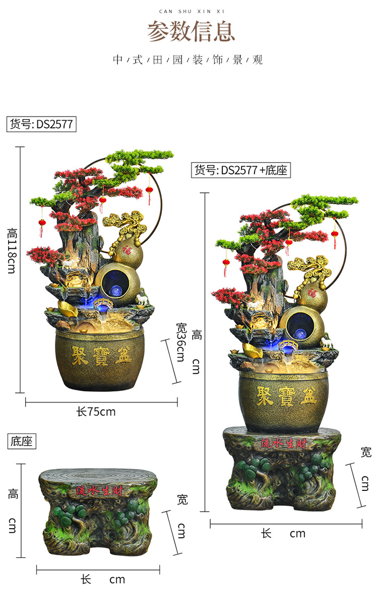 새로운 중국 스타일의 암석 분수 흐르는 물 부를 만드는 장식품 순환 물 거실 사무실 풍수 부를 만드는 바닥 장식