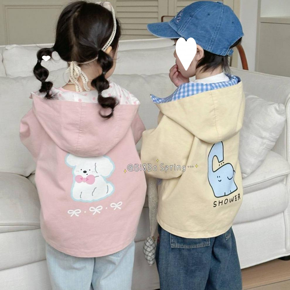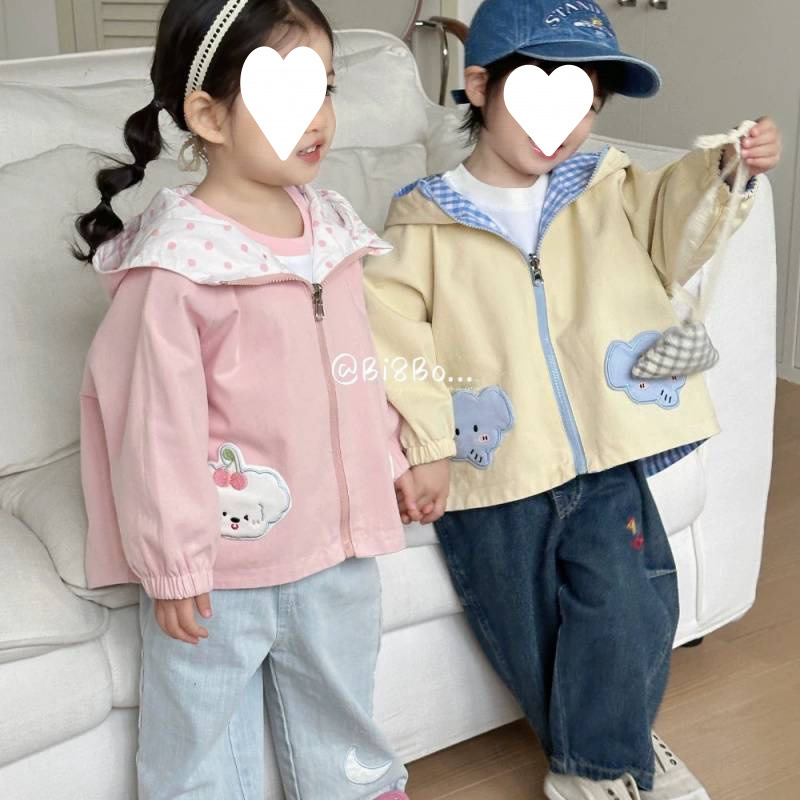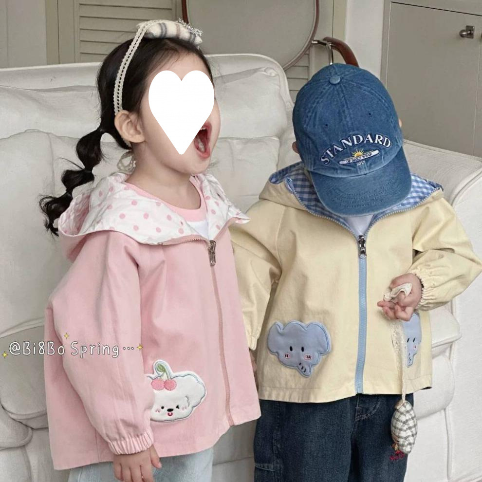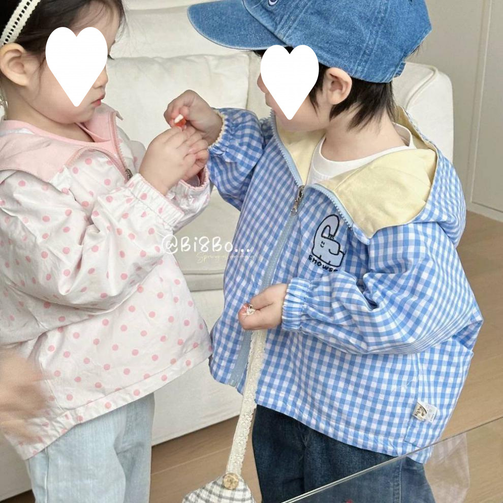 어린이 착용 새로운 어린이 캐주얼 소년과 소녀 귀여운 서양식 인쇄 양면 재킷 어린이 봄과 가을 후드스토어 가기