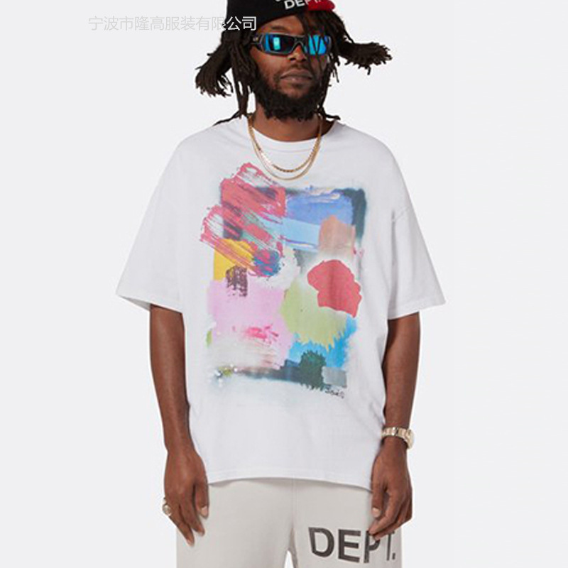 트렌디 한 브랜드 갤러리 DEPT 클래식 편지 슬로건 로고 그라디언트 두꺼운 인쇄 반팔 티셔츠